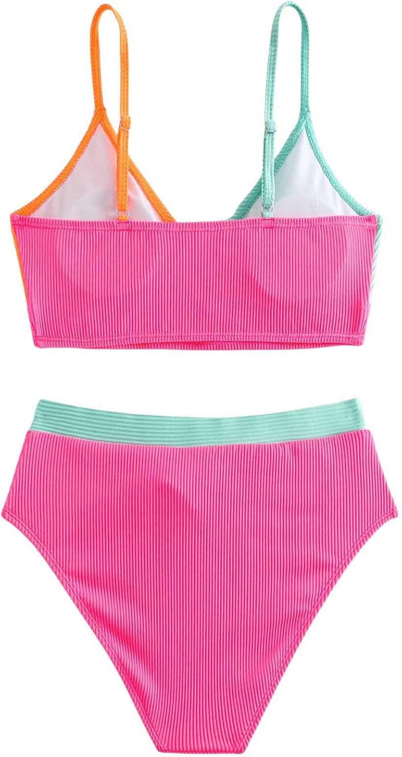 Be the first to review “Girl’s 2 Piece Swimsuits Colorblock Ribbed Knit Wireless High Waisted Bikini Cute Bathing Suit”