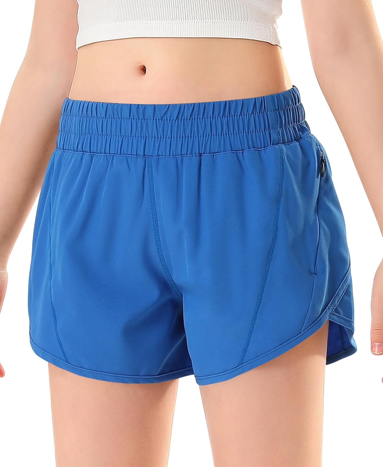 Girls Athletic Shorts with Zipper Pocket, Liner Quick Dry Running Shorts for Kids Teen Girls Active Sports Shorts