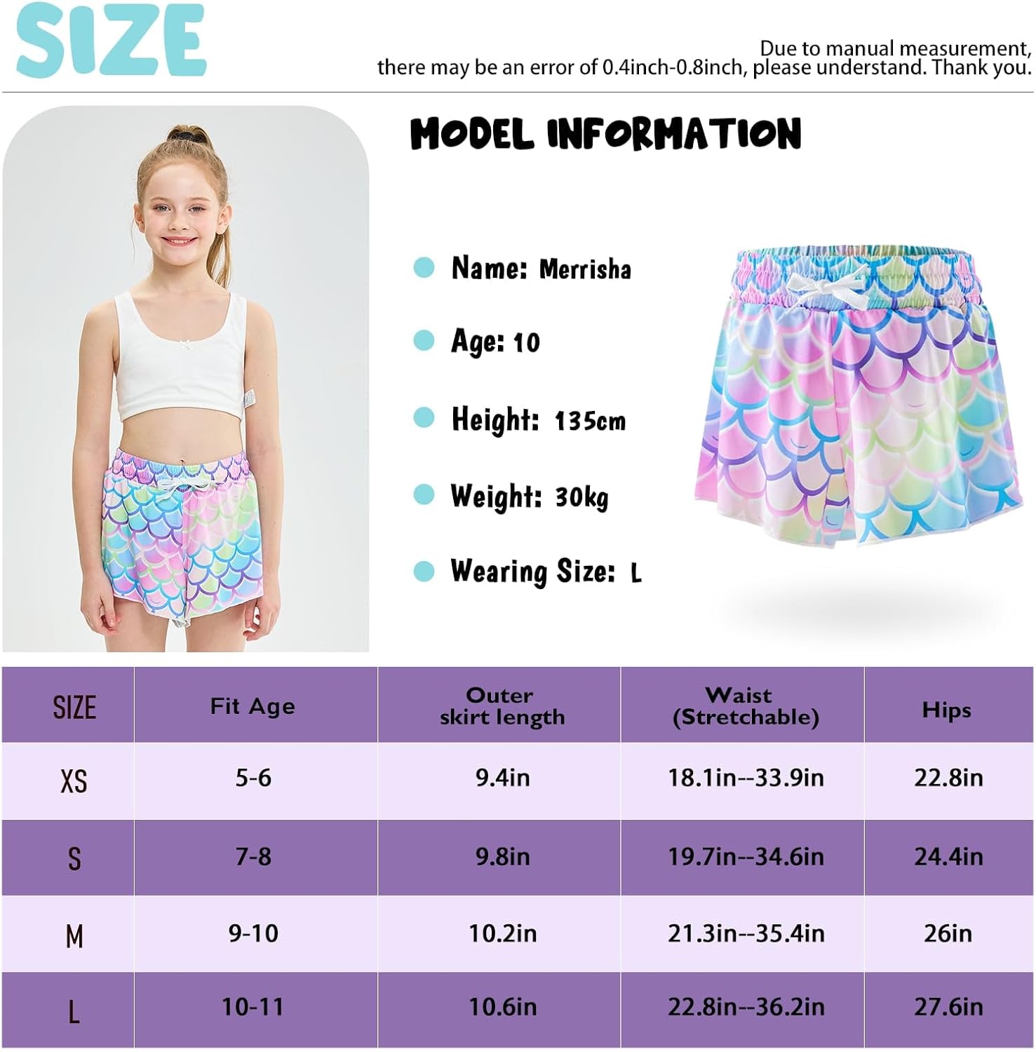 Girls Butterfly Shorts Unicorn Running Shorts 2 in 1 Flowy Athletic Shorts Casual Skirt for Teens Kids