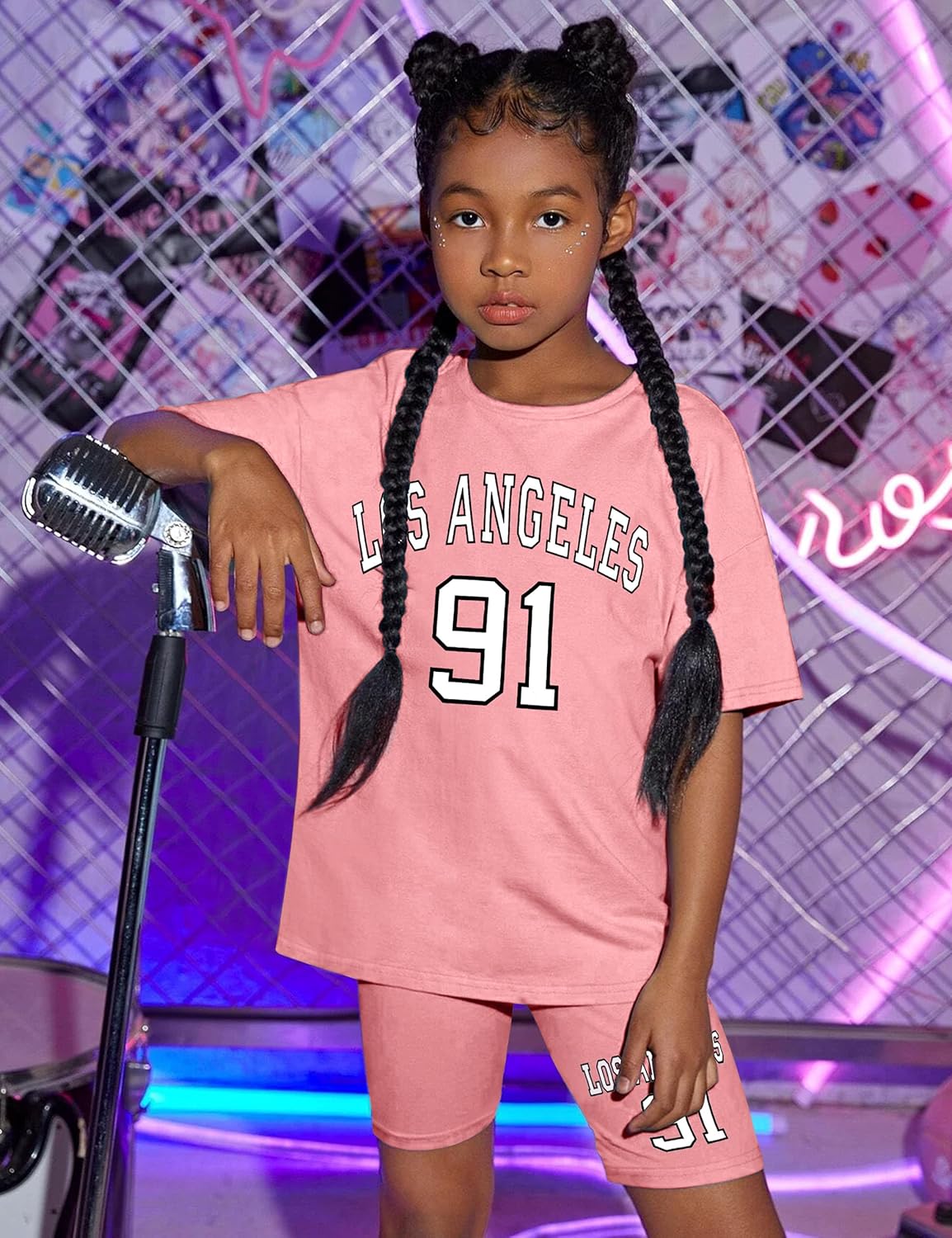 Be the first to review “Girls Clothes Summer Outfits Letter Graphic Print Tee Shirt + Biker Shorts 2Pcs Clothing Set 7-14T”