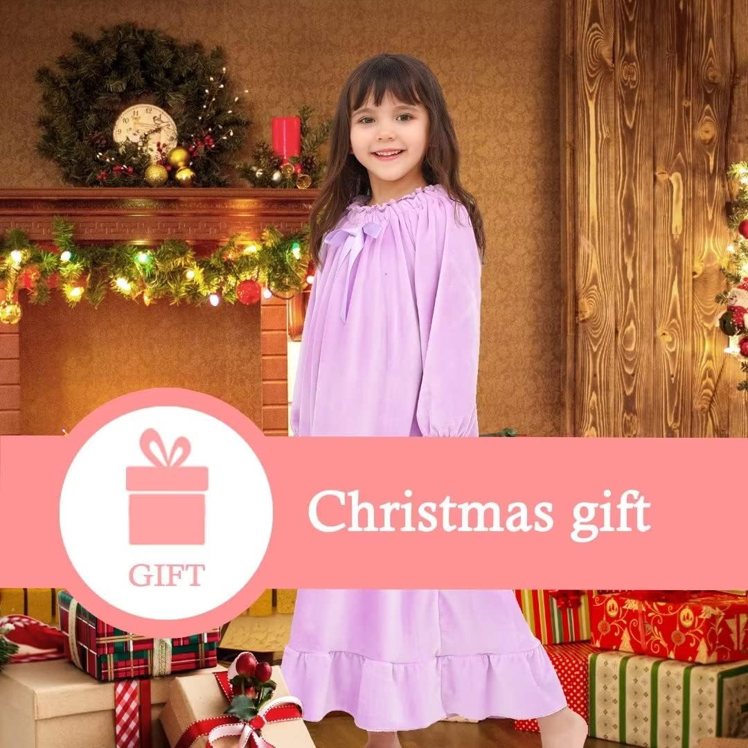 Girls Flannel Nightgown,Winter Warm Fleece Pajamas Dresses for Girls, Long Sleepwear with Long Sleeve, Size 2T-14