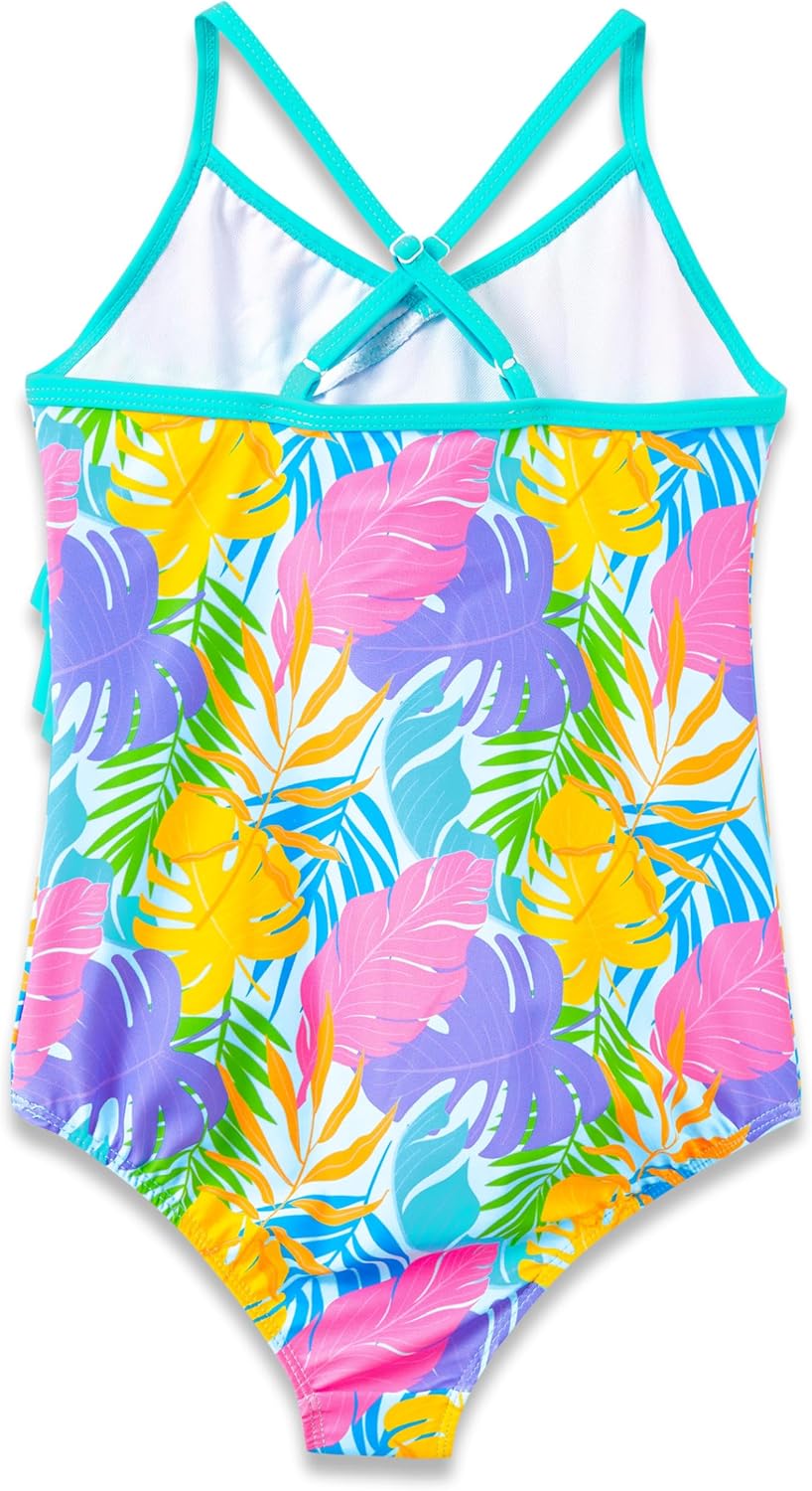 Your little one will feel like a mermaid on this cute girls’ sparkling scales graphic pattern one piece swimsuit. It also features a fun and colorful theme perfect for water-side photos. Plus, how sweet are these ruffles in front!