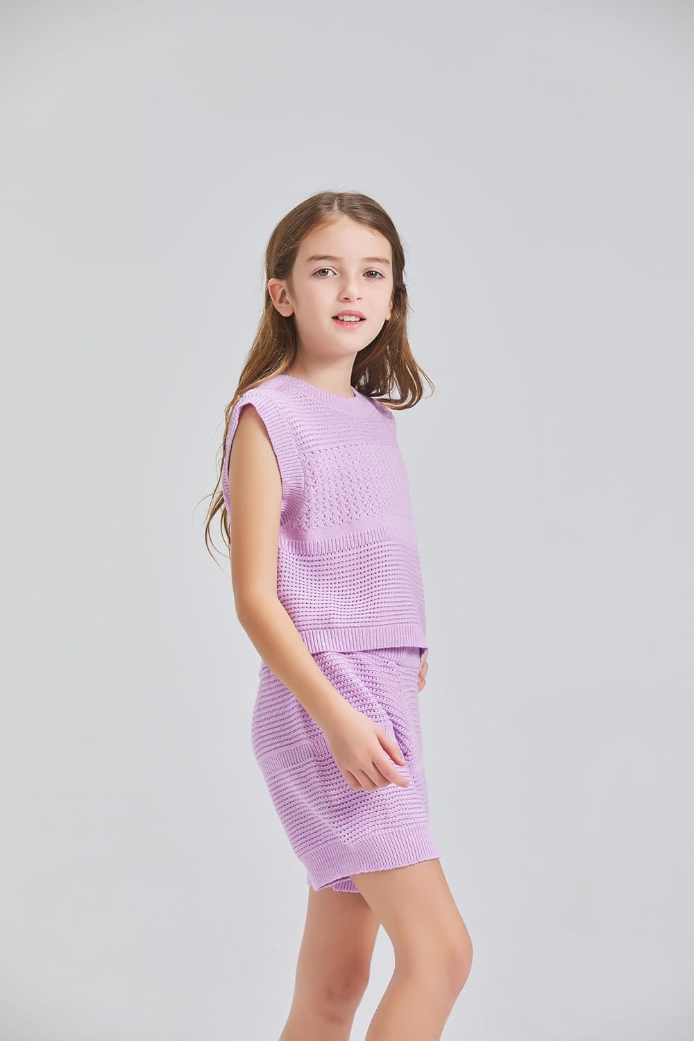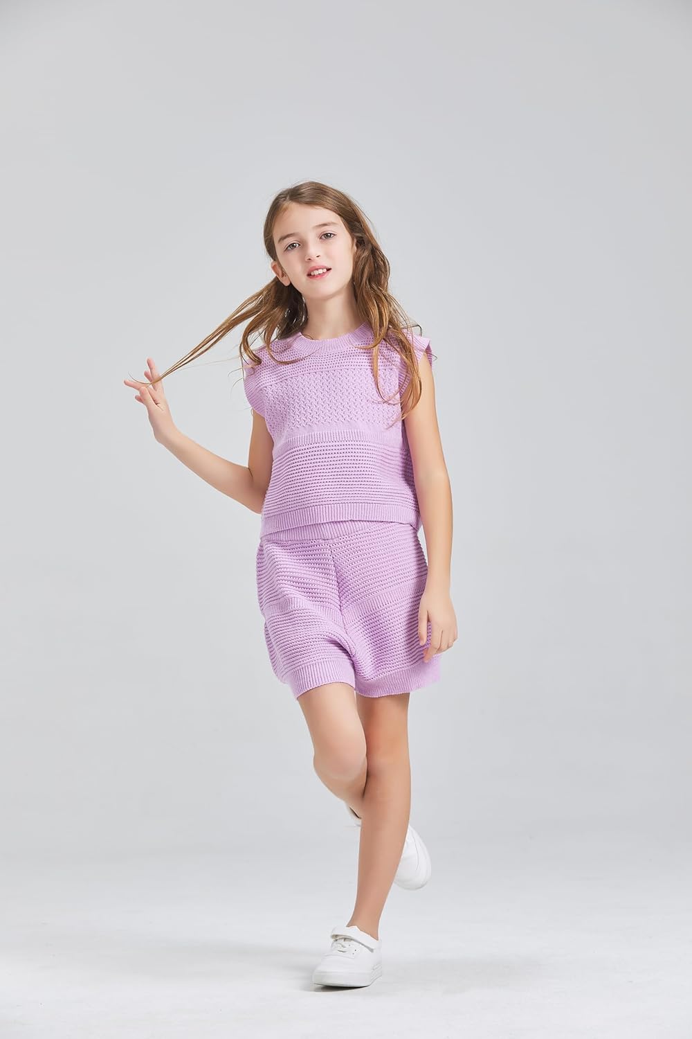 Girls Outfits 2 Piece 2024 Trendy Clothes Summer Cute Knitted Sleeveless Tops Shorts Clothing Sets