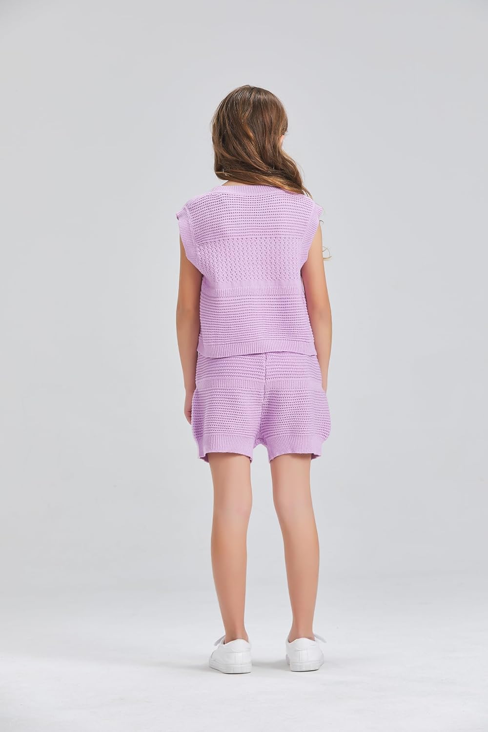 Girls Outfits 2 Piece 2024 Trendy Clothes Summer Cute Knitted Sleeveless Tops Shorts Clothing Sets