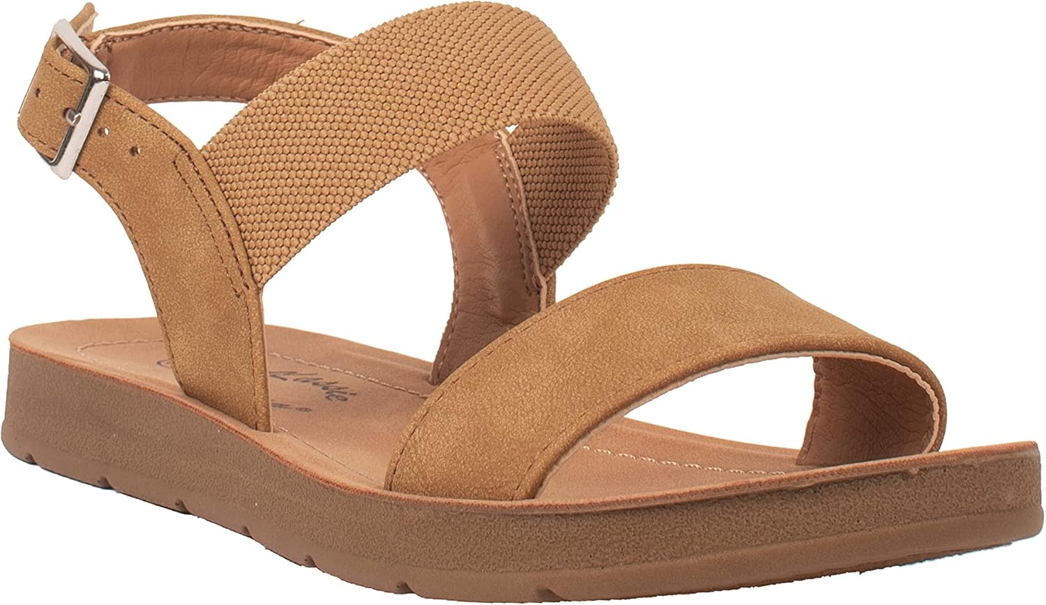 Girls Sandals Casual Open Toe Single Band with Elastic Ankle Strap Buckle Fashion Slide Flats RAIN-2
