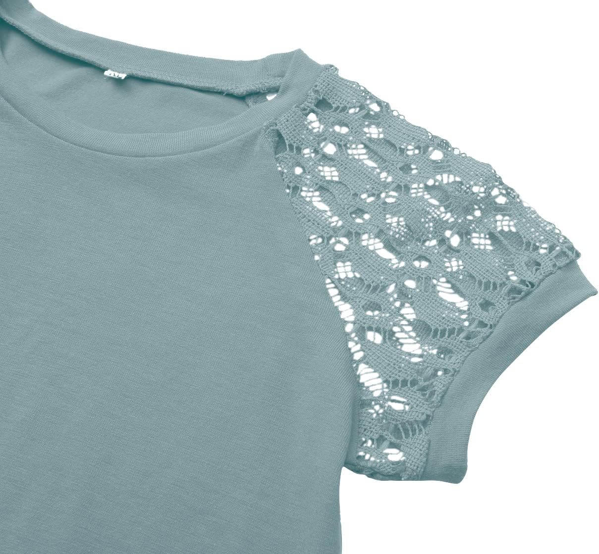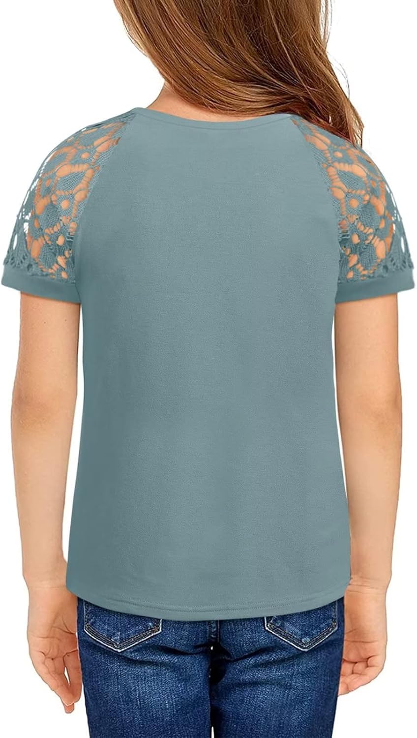 Girls Short Sleeve Shirts Lace Kids Casual Loose Soft Blouse 5-14 Years