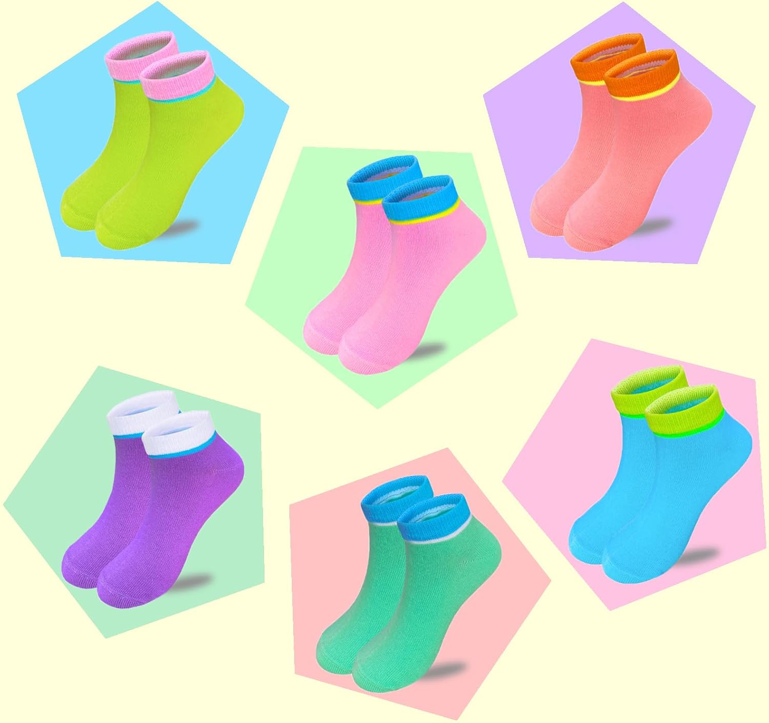 Girls Socks 12 Pairs Ankle Socks Kids Athletic Cotton Socks Low Cut Socks