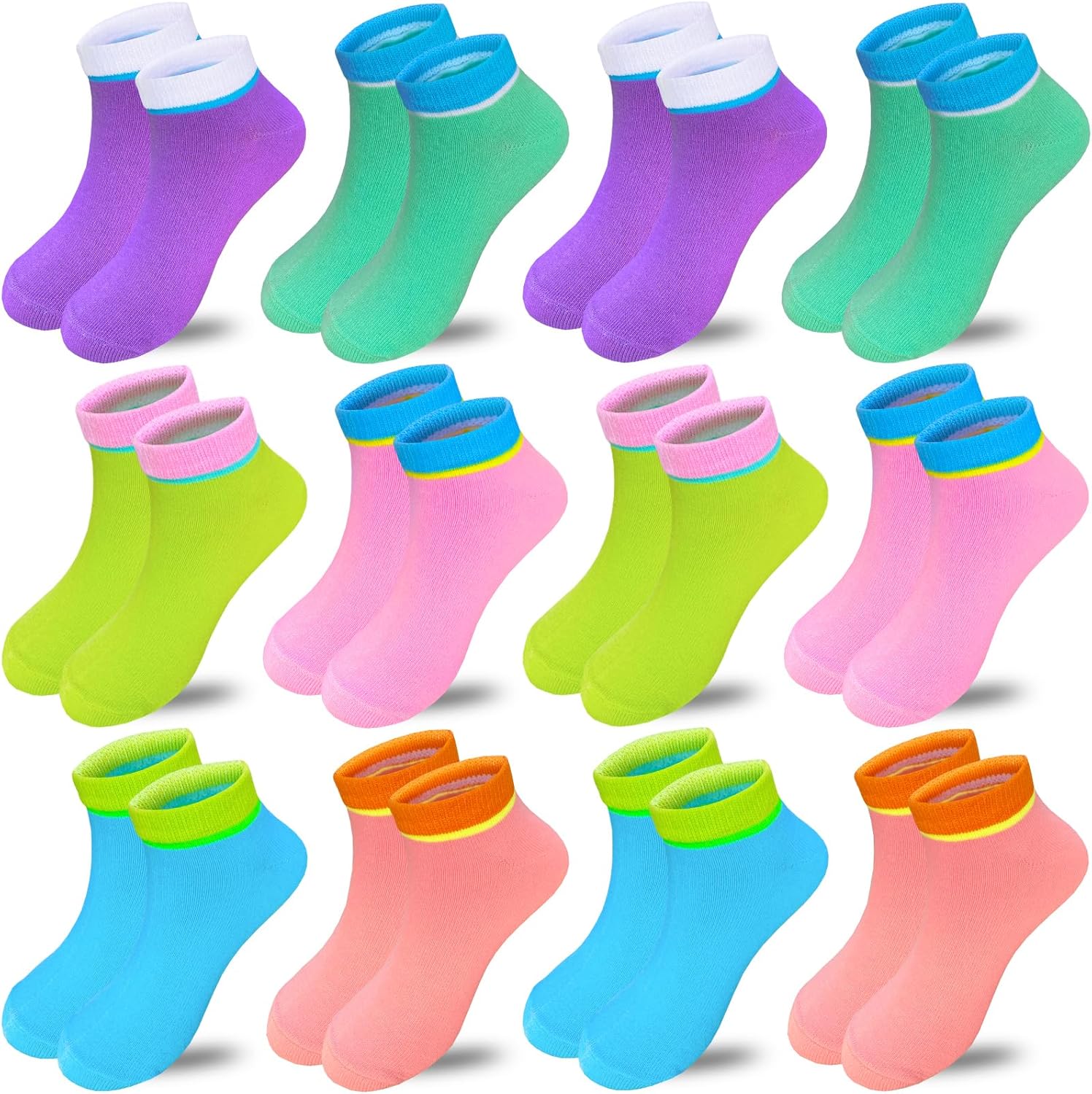 Girls Socks 12 Pairs Ankle Socks Kids Athletic Cotton Socks Low Cut Socks