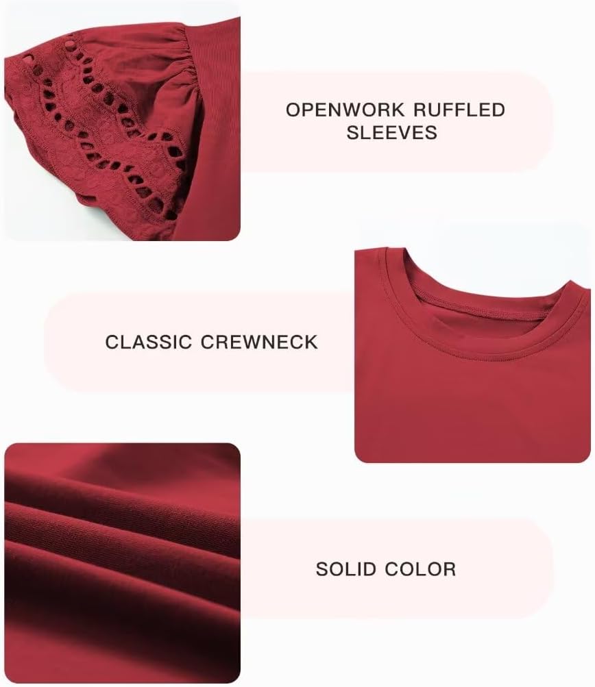 Girls Summer Shirts Crewneck Ruffled Short Sleeve Blouse Tops Size 6-15 Years