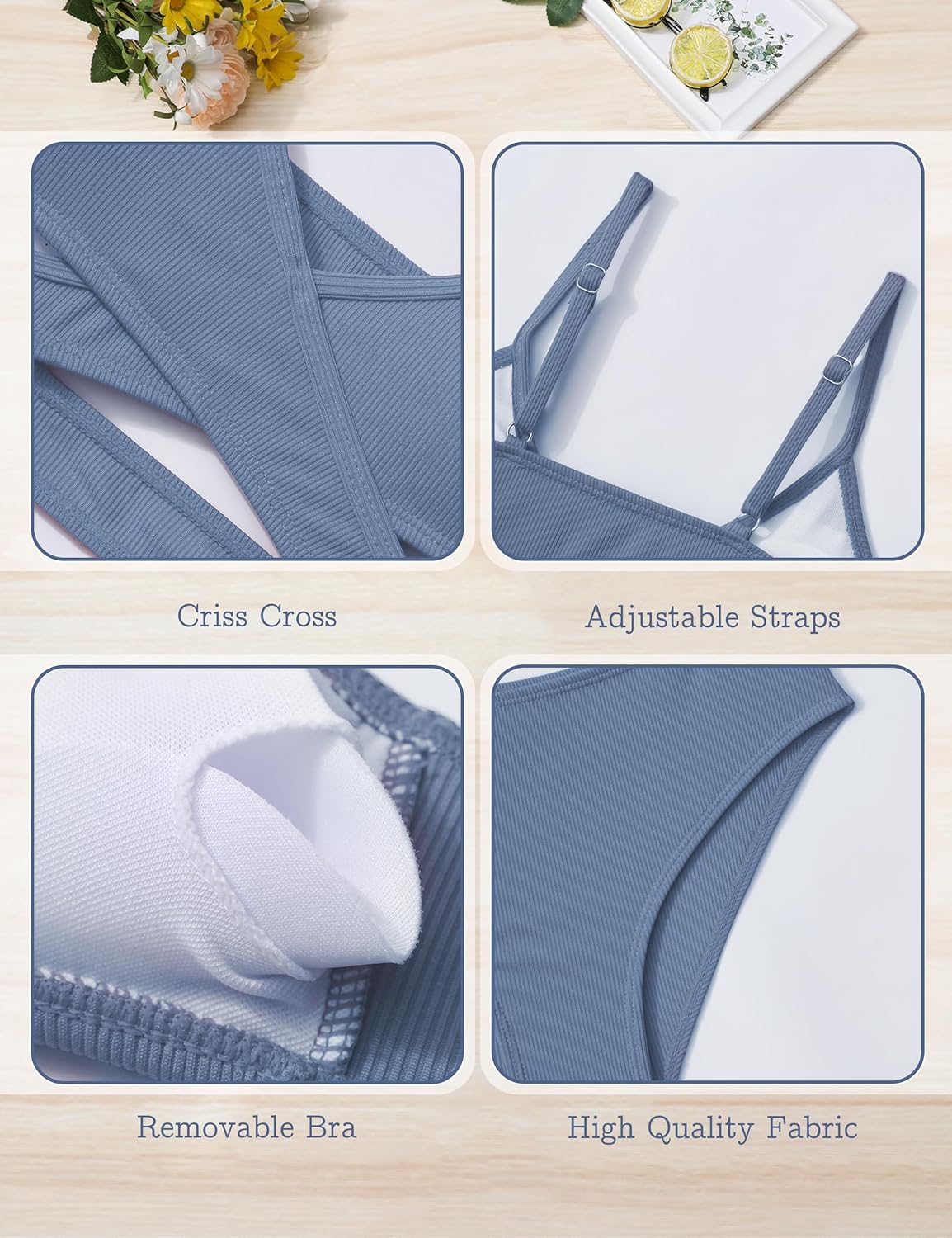 Fashion Style: Two Piece /Criss Cross /Adjustable Straps/Removable Padded/Elastic Waist