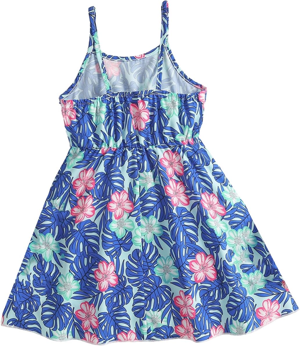 Girl’s Tropical Print Cami Dress Sleeveless Backless Square Neck A Line Short Dresses