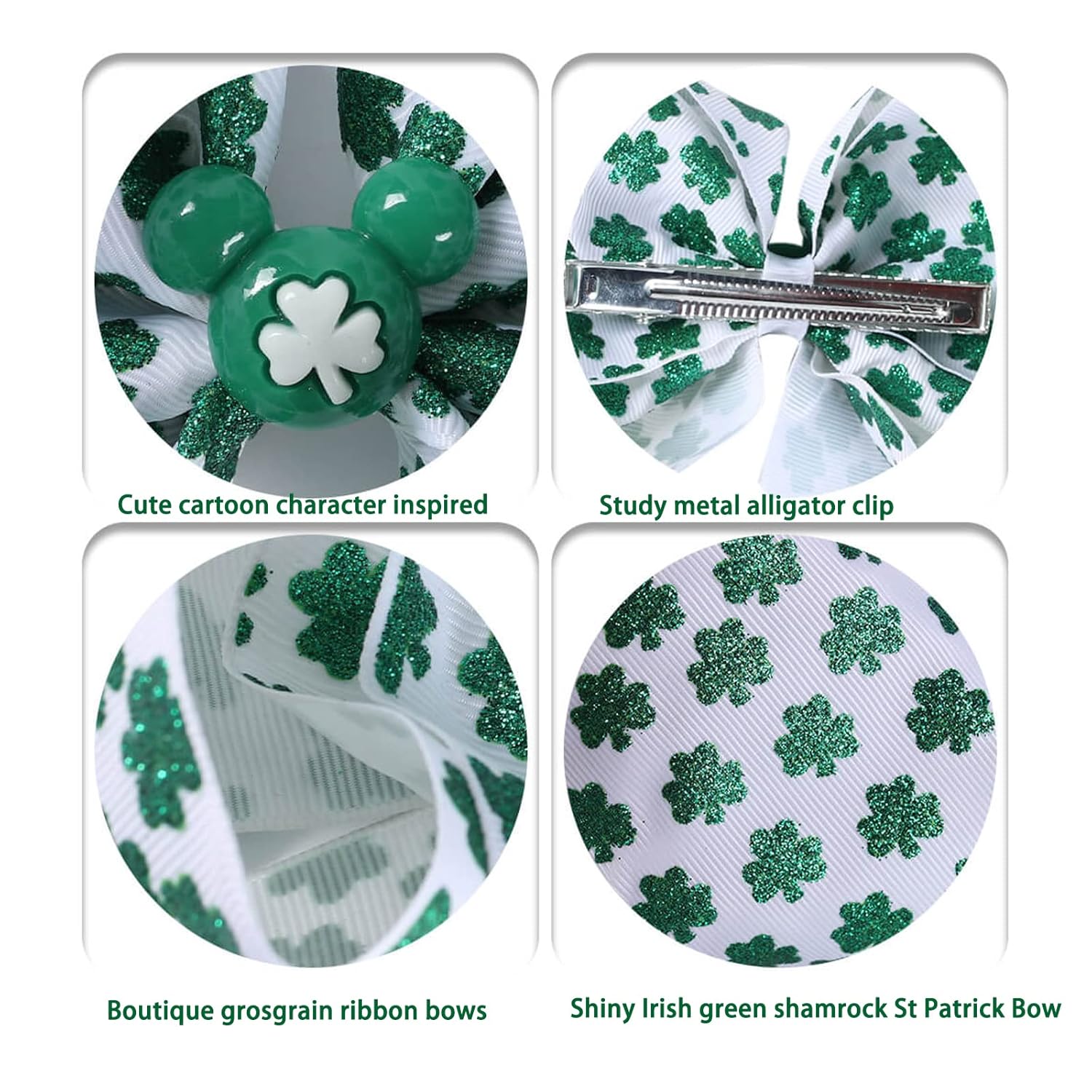 Easy Match Outfits- So adorable cartoon character inspired, hand-made st. Patrick’s day glitter sequin shamrock print mouse hair bows clips will match any irish costume outfit, go with st patrick’s day party, parade, celebration; nice addition to st. Patrick’s day dress up accessories for family gathering, theme parties and more.