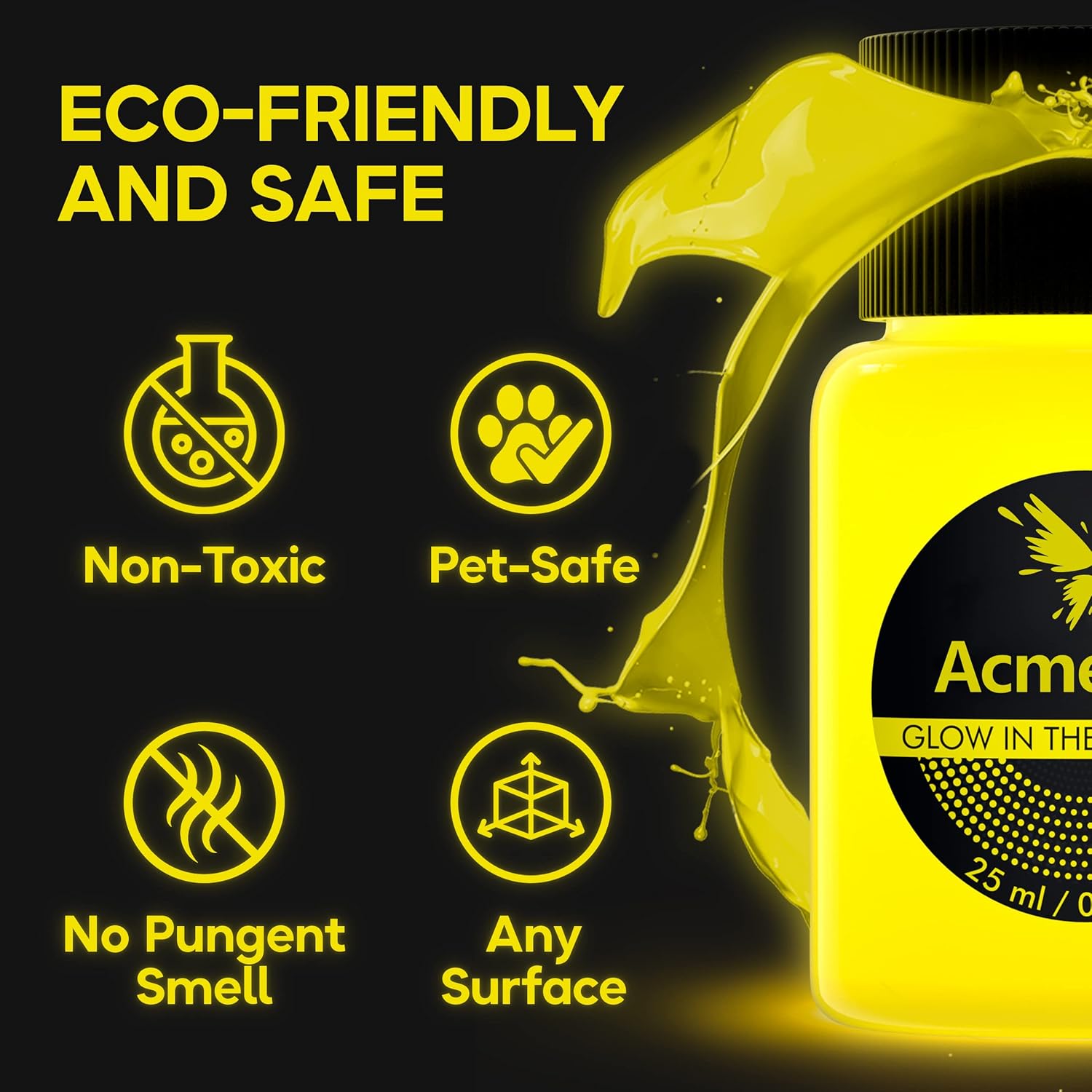 Glow in the Dark Acrylic Paint – Fluorescent Paint for Canvas – Neon Decoration – Blacklight Paint Set – Art Supplies for Adults – Craft Gift for Artists