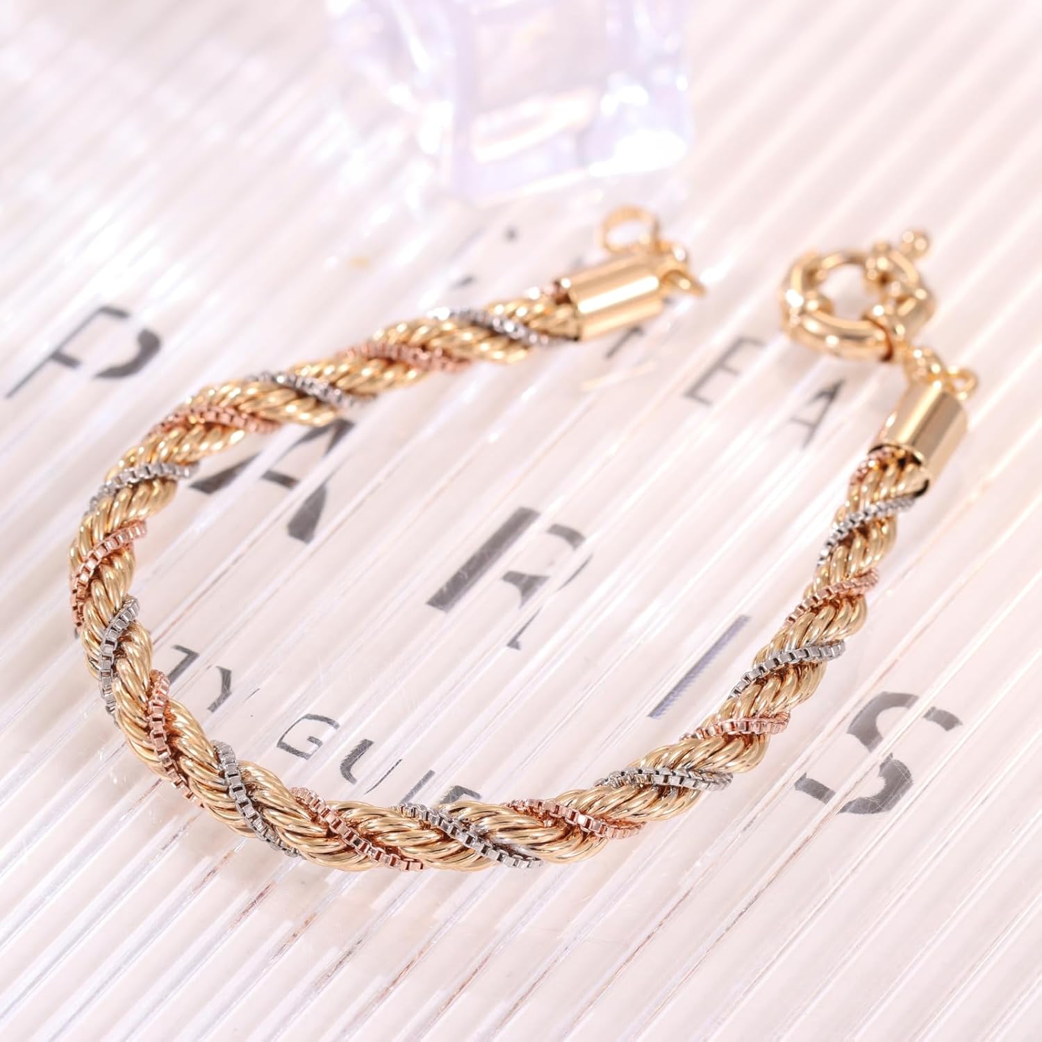 Gold Bracelet for Women Girls Gifts – Silver Rose Gold Bracelet Tri Color – 7 inches Twisted Wrap Chain Cooper Bracelet for Women Teen Girls Friendship