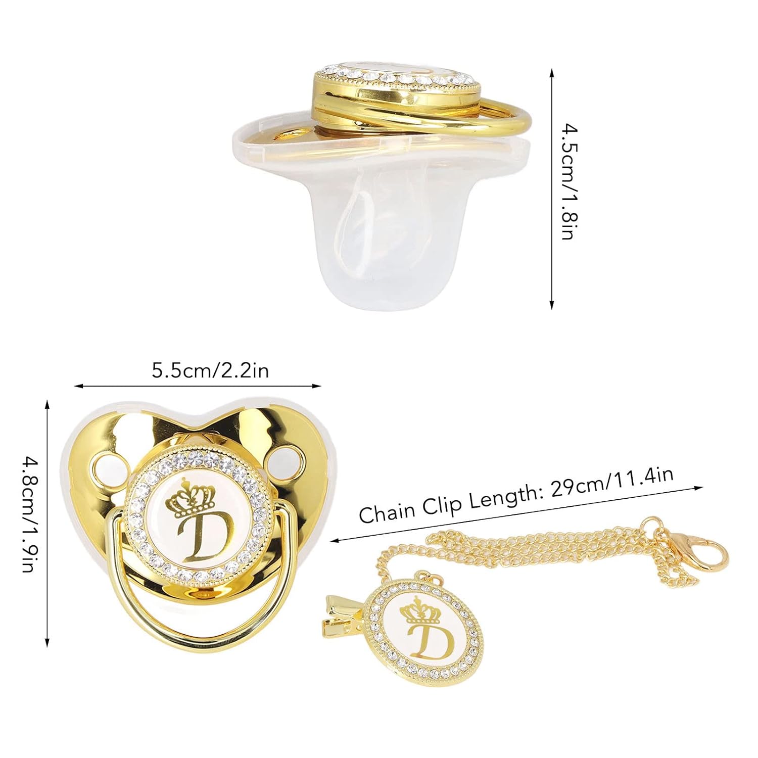 Golden Letter Baby Pacifier, Personalized Bling Pacifier with Pacifier Clips and Anti-Dust Cover for Baby Shower Newborn Birthday Photography(Letter D)