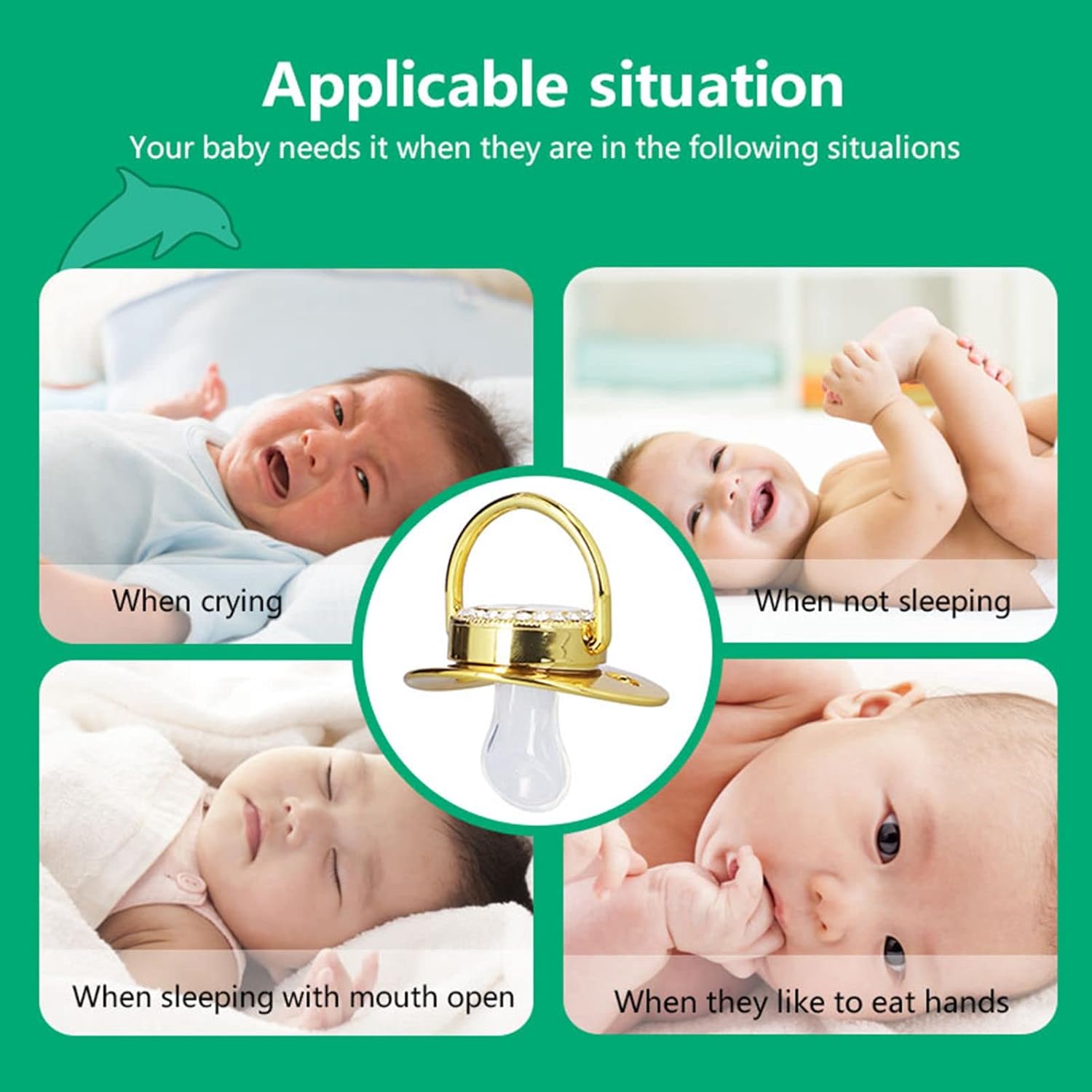 Ergonomic And Safe: The golden pacifier adopts mellow design, which is ergonomic and reduces friction with the nose, safe and reliable for baby to use.
