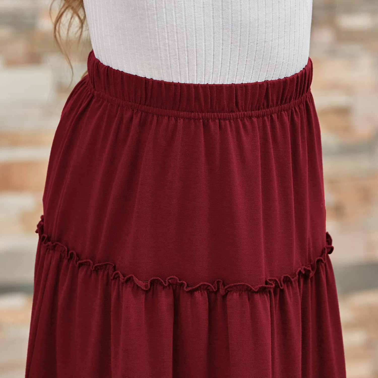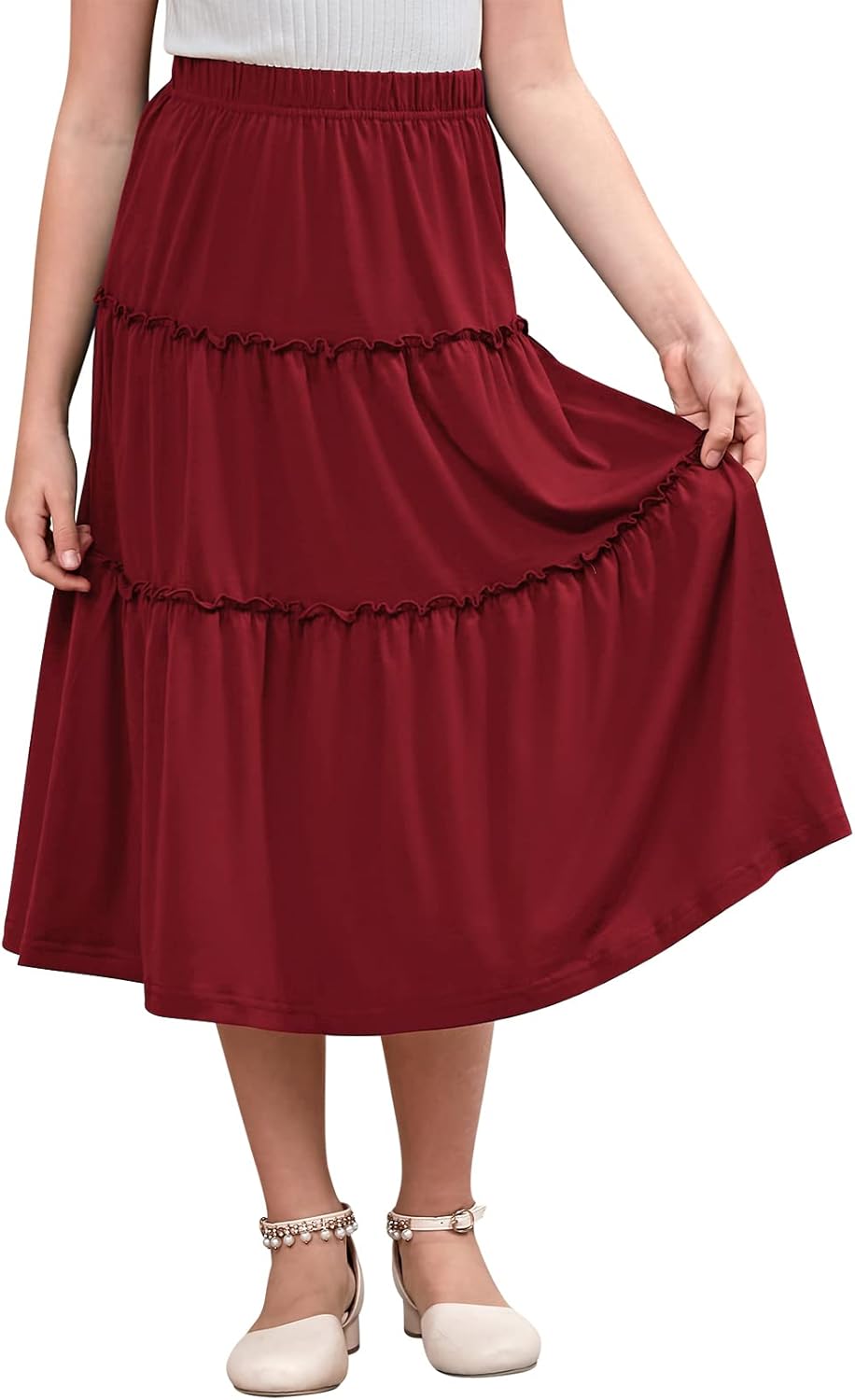 GORLYA Girls Boho Casual Elastic High Waist Tiered Ruffle Hem Long Swing Maxi Skirt 4-14T
