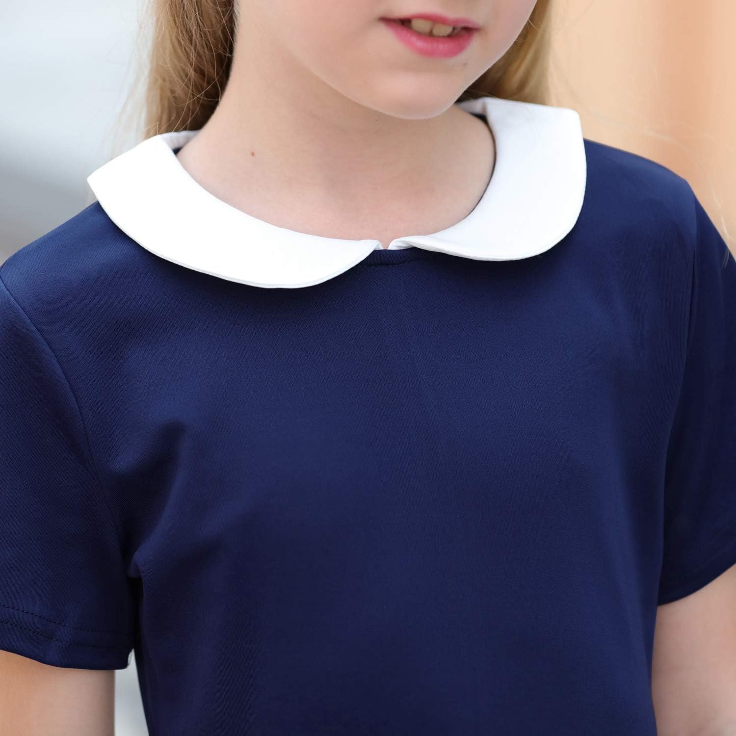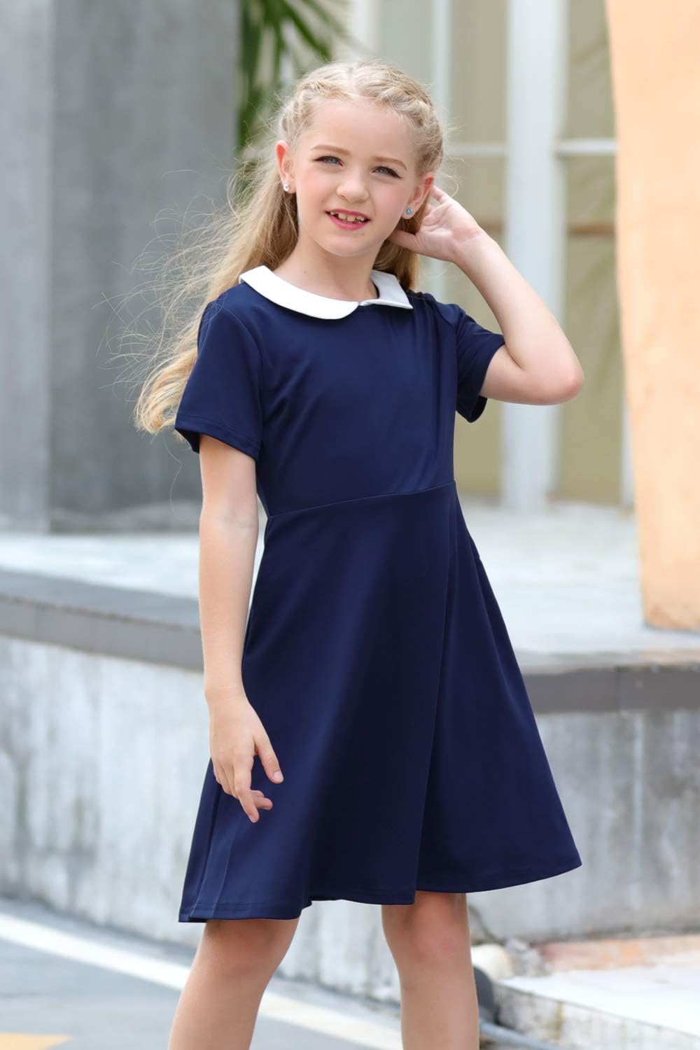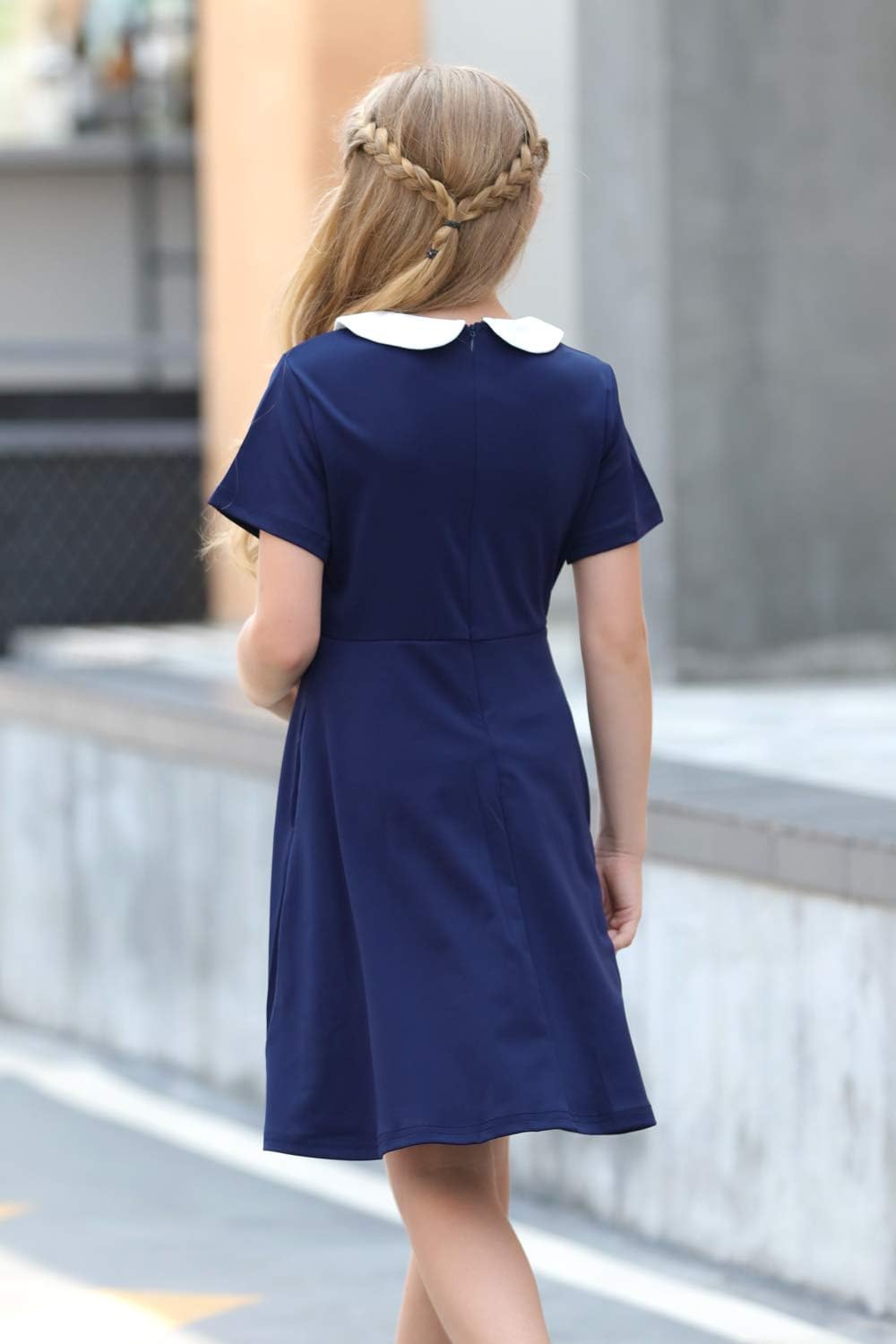 GORLYA Girl’s Short Sleeve Casual Vintage Peter Pan Collar Fit and Flare Skater Party Dress with Pockets 4-12 Years