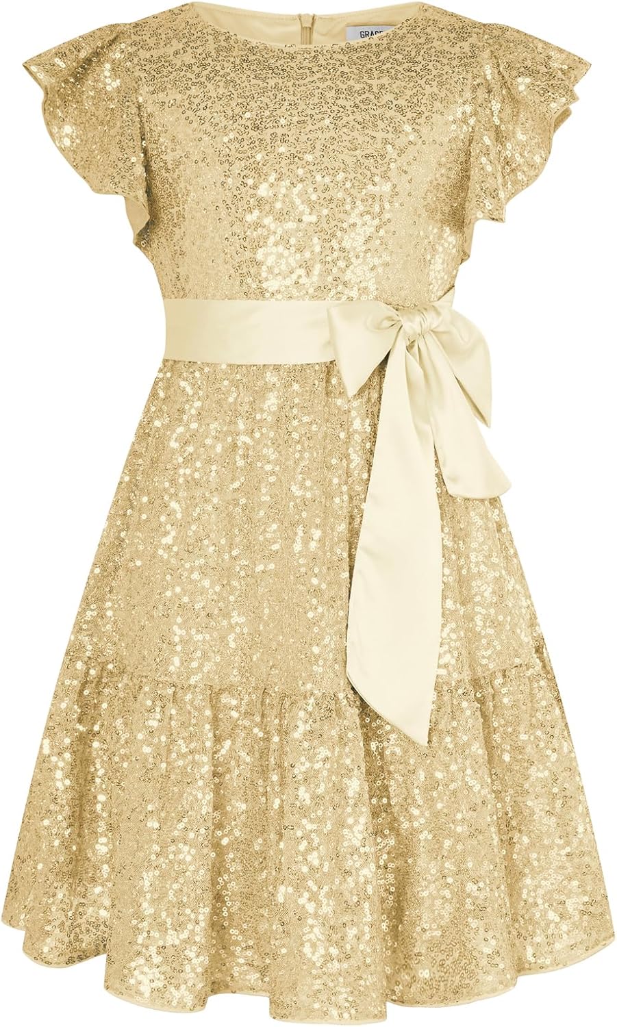 Original price was: $110.00.$64.23Current price is: $64.23.GRACE KARIN Girl Sequin Dress Ruffle Sleeve A-Line Holiday Party Dress 5-12Years