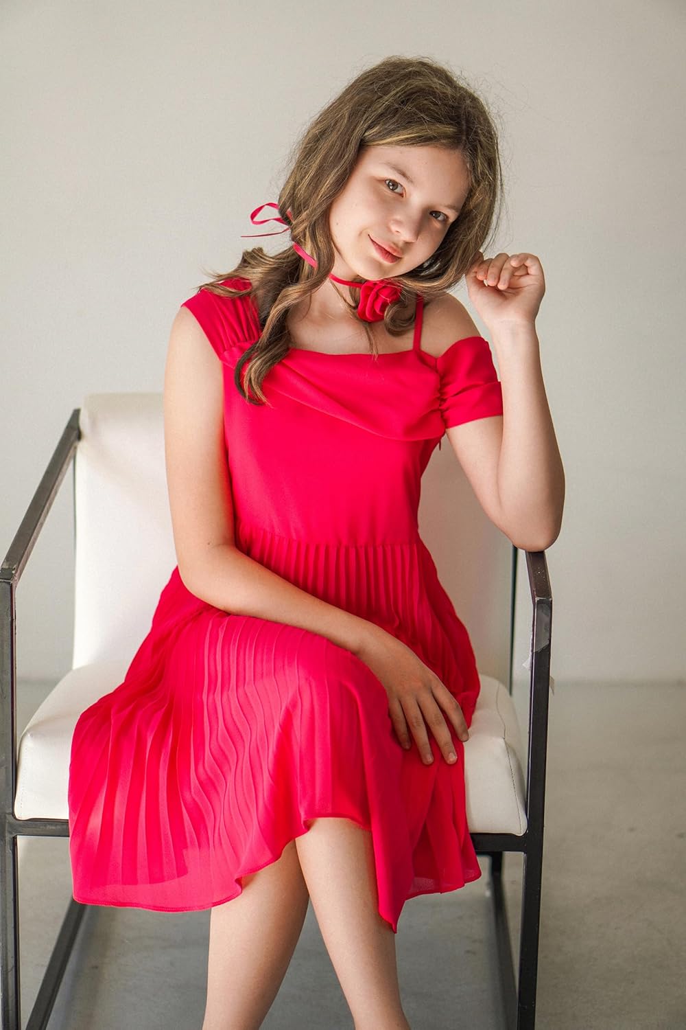 GRACE KARIN Girls Dress Off Shoulder Flower Girl Pleated Birthday Party Formal Dance Dresses Size 5-12
