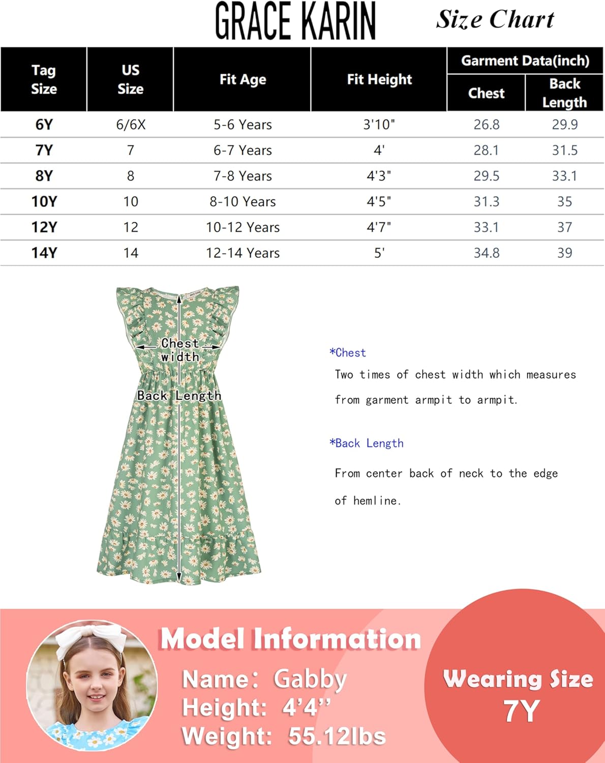 GRACE KARIN Girls Dress Ruffle Sleeve Striped Floral Spring Summer Dress for Kids 6-14Y