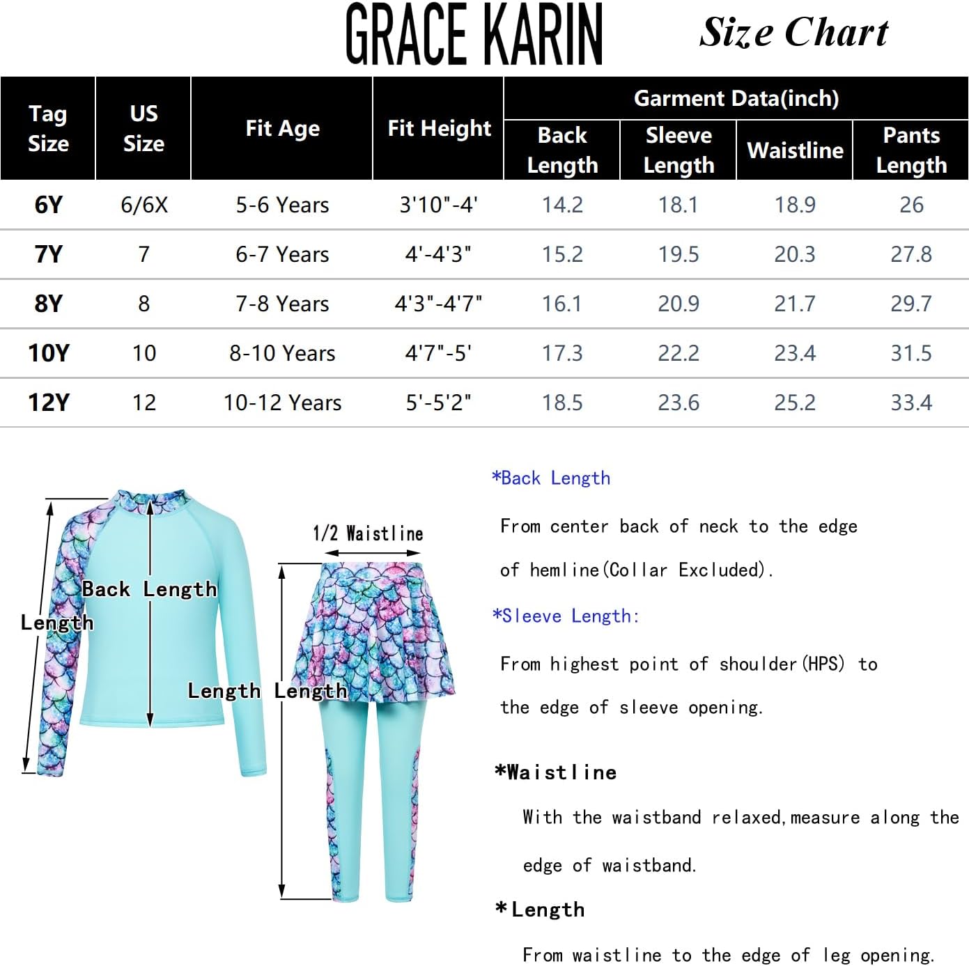 GRACE KARIN Girls Long Sleeve Swimsuit Two Piece Rashguard Floral Swimwear 6-14Y
