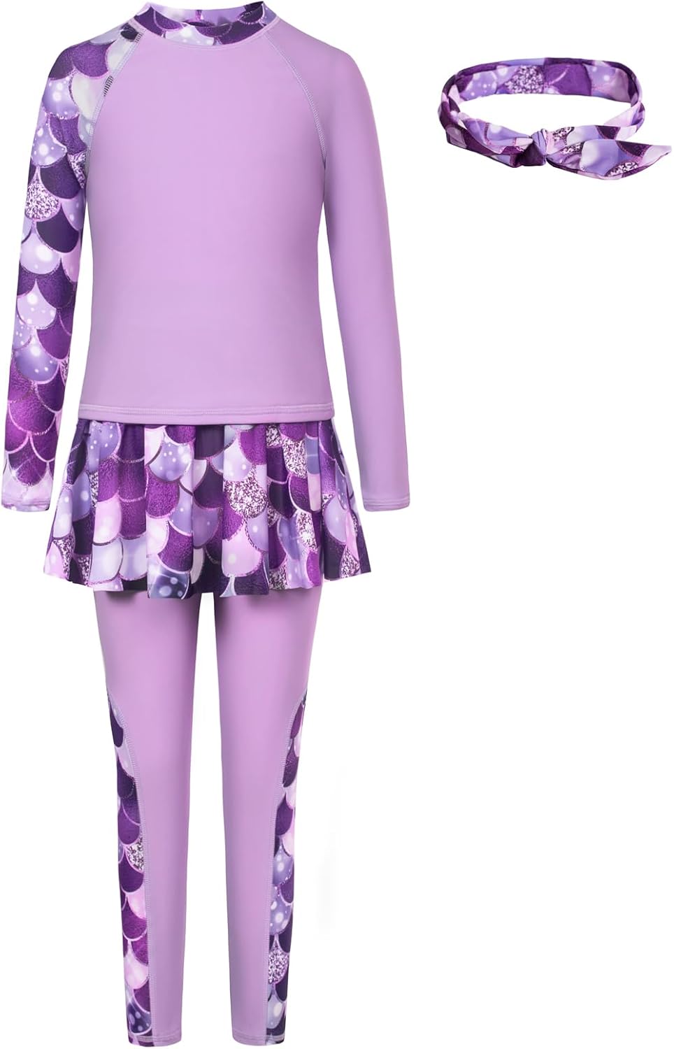 GRACE KARIN Girls Long Sleeve Swimsuit Two Piece Rashguard Floral Swimwear 6-14Y