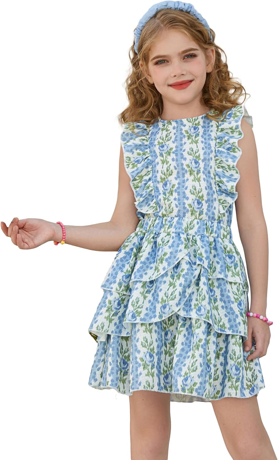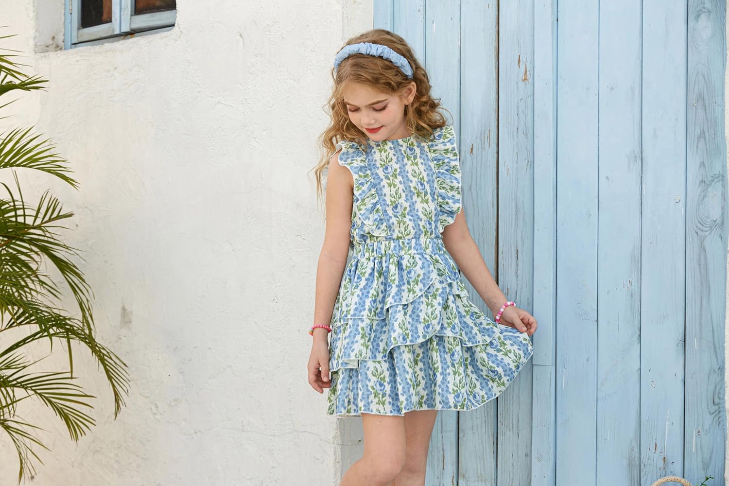 GRACE KARIN Girls Outfits Two Piece Summer Clothes Flutter Sleeve Top Cake Kids Skirt Set Size 5-12
