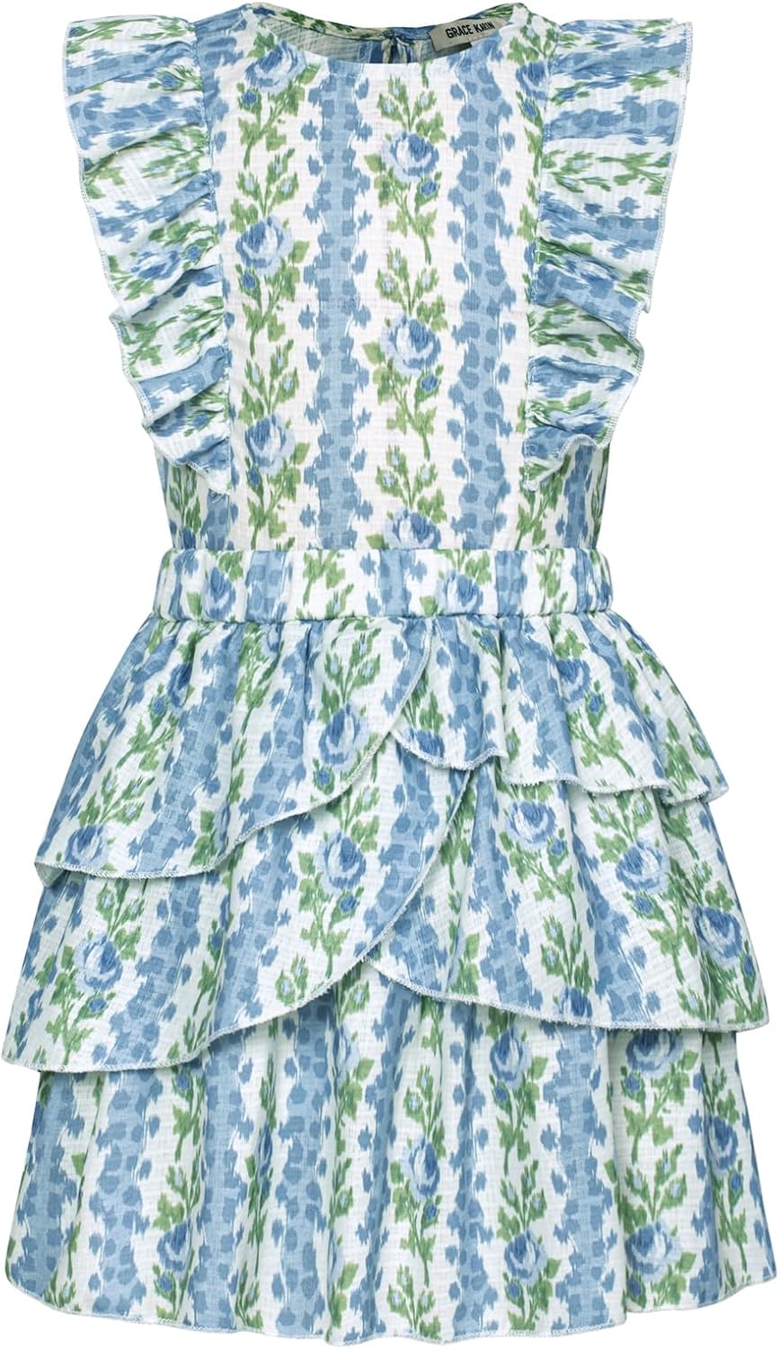GRACE KARIN Girls Outfits Two Piece Summer Clothes Flutter Sleeve Top Cake Kids Skirt Set Size 5-12