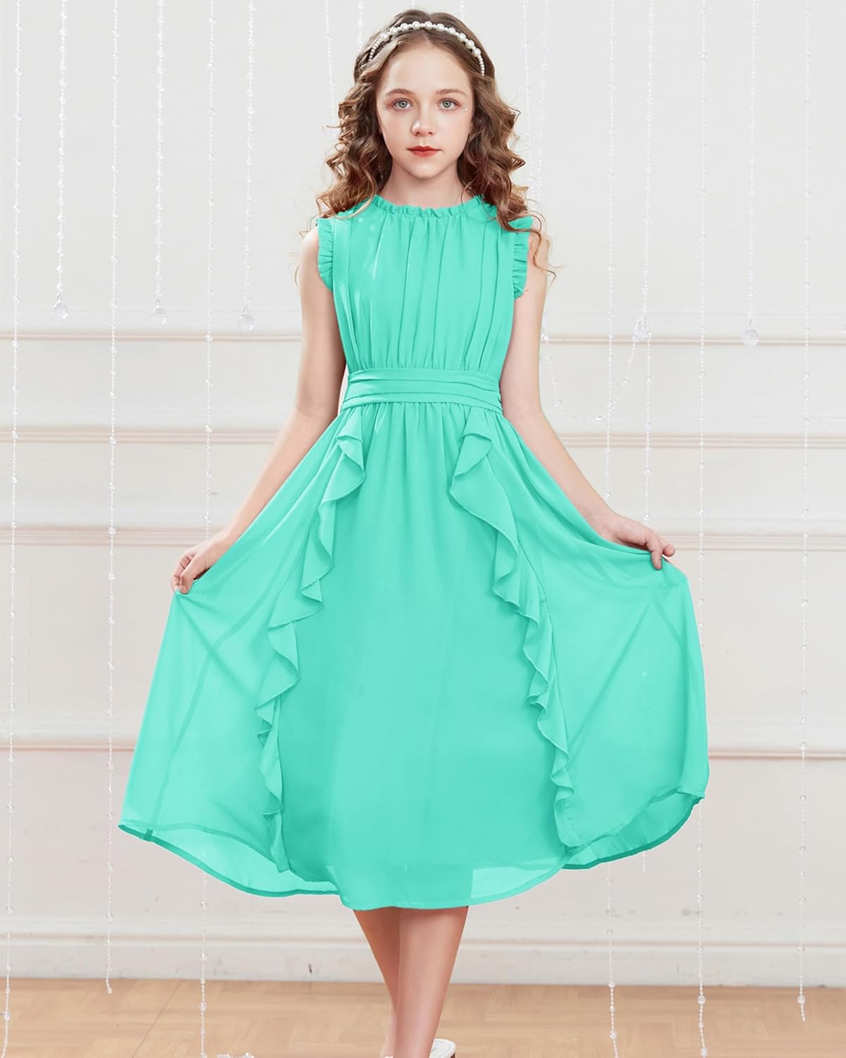 GRACE KARIN Girls Party Dress Ruffle Sleeveless Special Occasion Spring Dresses