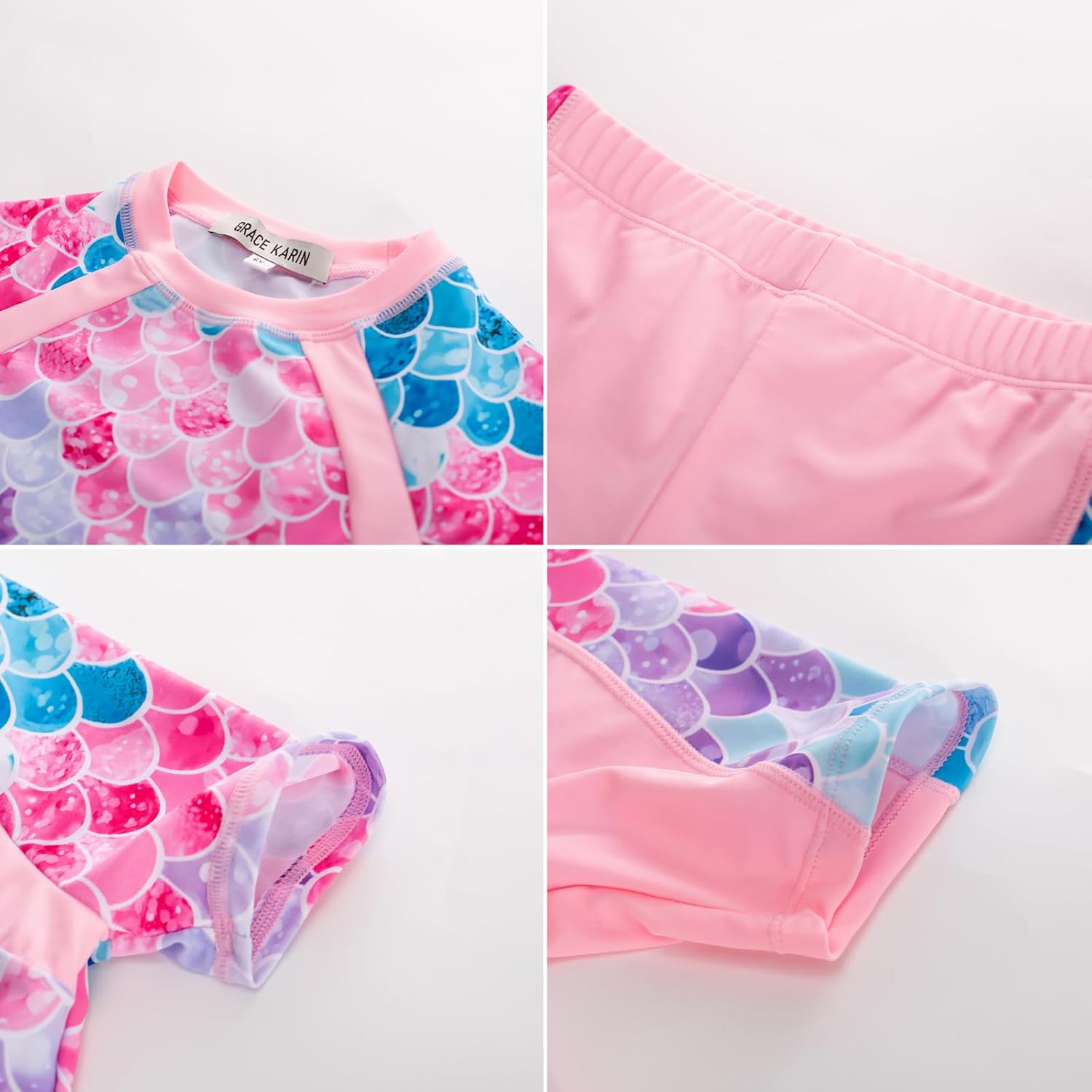 GRACE KARIN Girls Rash Guard Swimsuit Short Sleeve Two Piece Bathing Suit 6-12Y