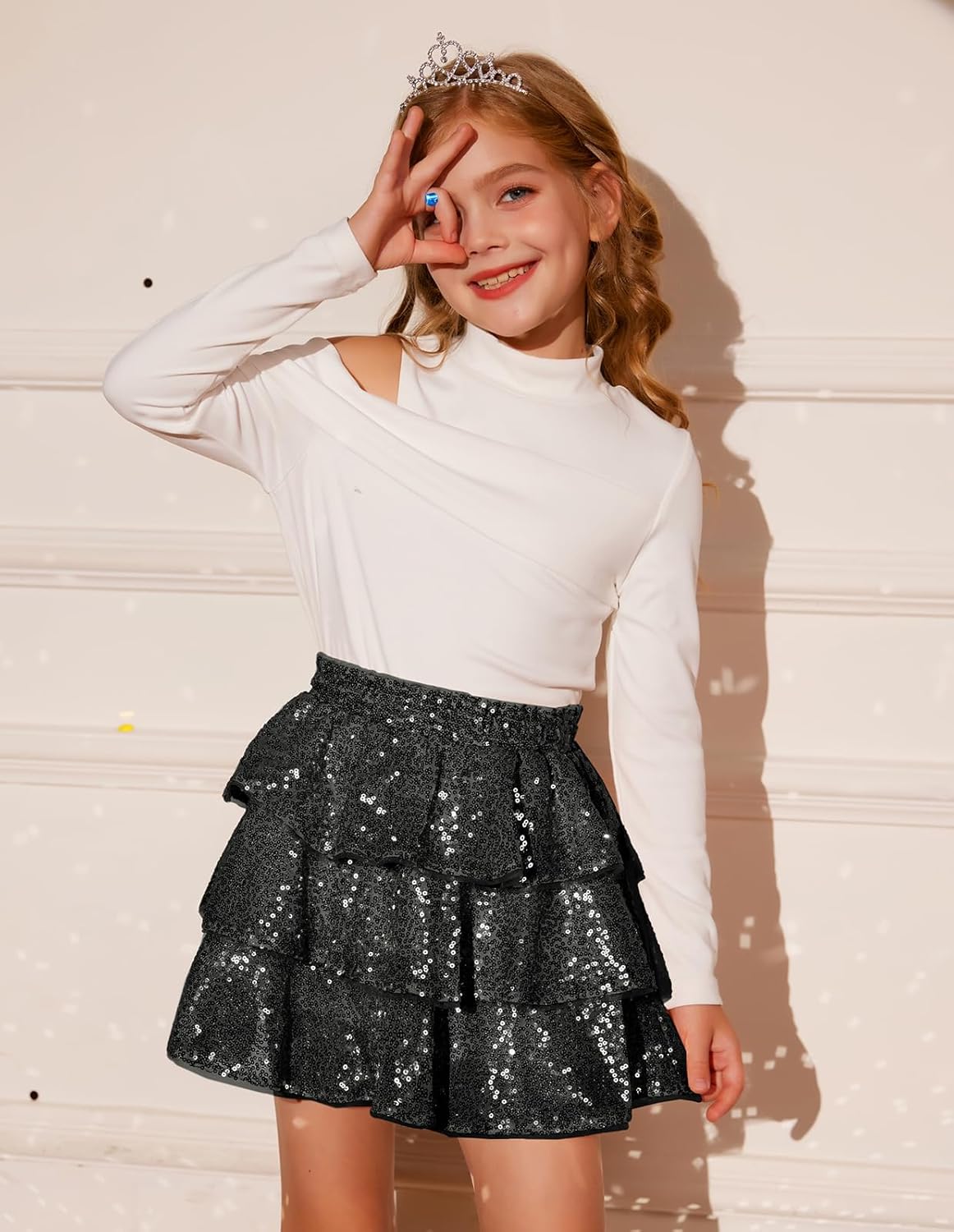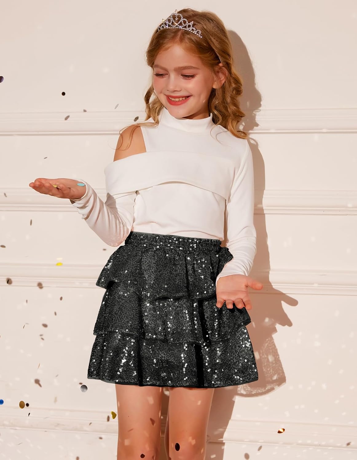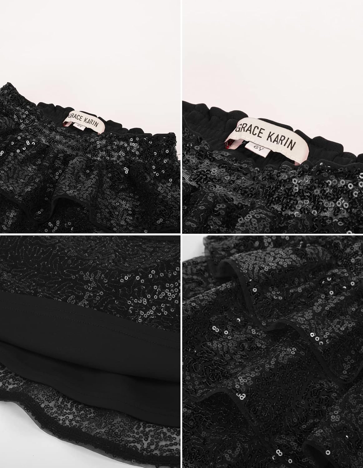 GRACE KARIN Girls Ruffle Skirt Elastic Waist Sequin Skirt for Party