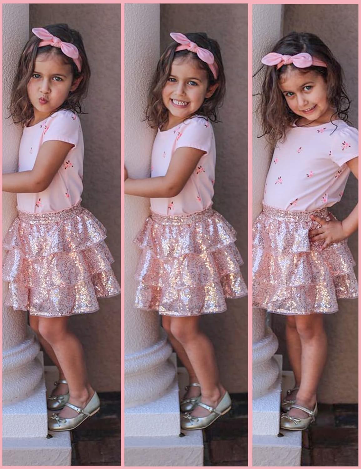 GRACE KARIN Girls Ruffle Skirt Elastic Waist Sequin Skirt for Party