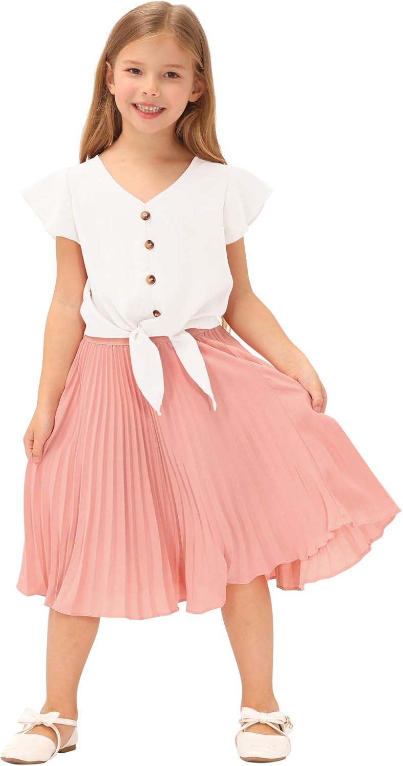 Girls Casual Short Sleeve Big Girls Fashion Tops Knot Hem Button Blouse Loose Tee Shirts