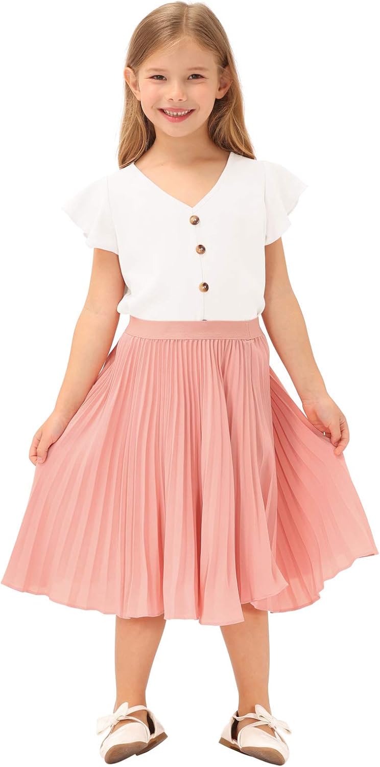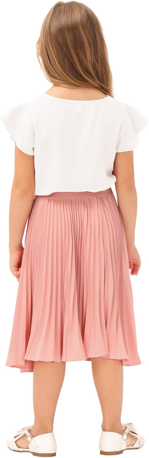 Girls Ruffle Sleeve Tops Cute Summer Blouse Solid Color T Shirts Birthday Shirt