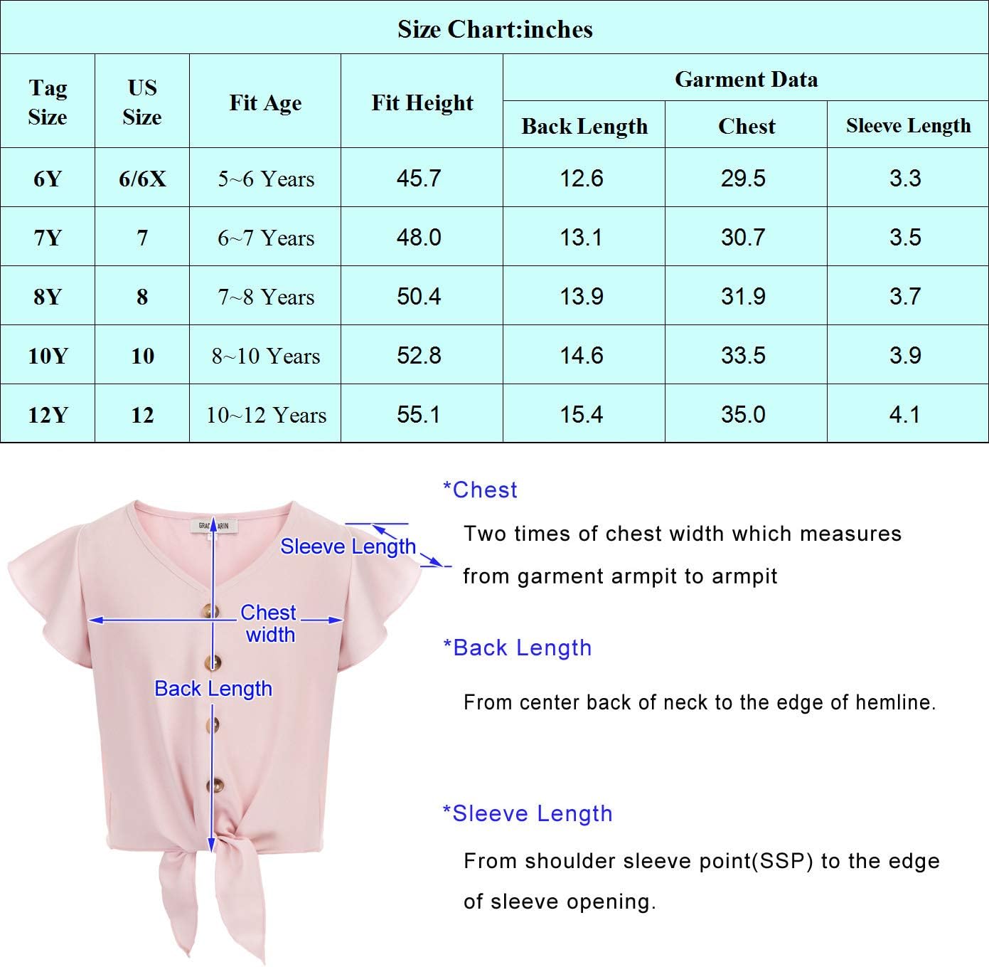 GRACE KARIN Girls Short Sleeve Shirts V Neck Ruffle Tie Knot Tops Solid Color Summer Shirts Blouse