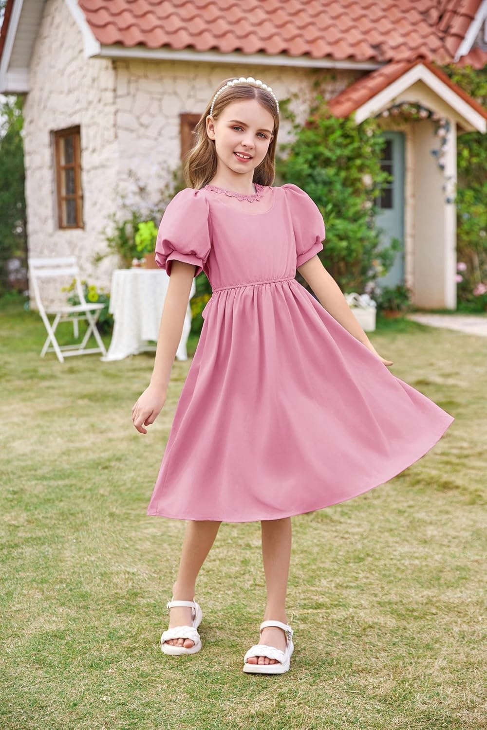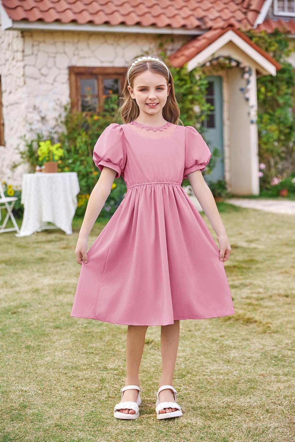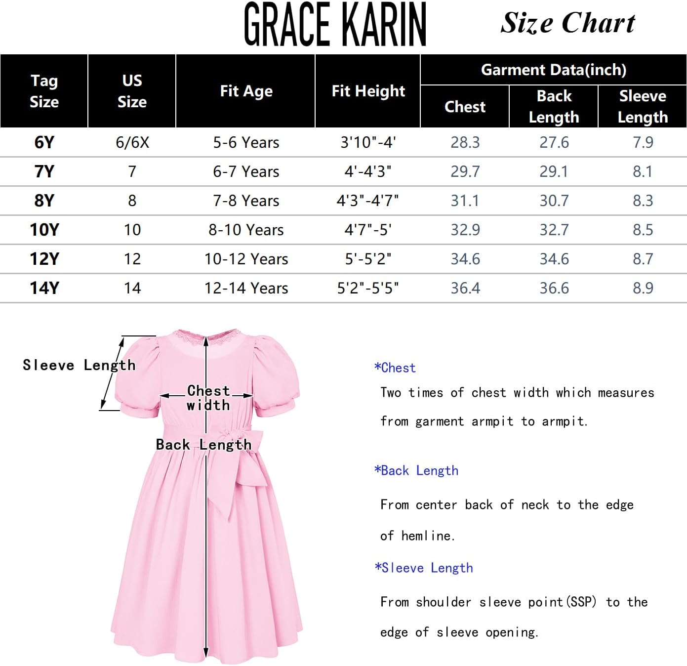 GRACE KARIN Girls Summer Contrast Mesh Puff Sleeve Ruffle Spring Party Special Occasions Dress for Tween Girls Size 5-12
