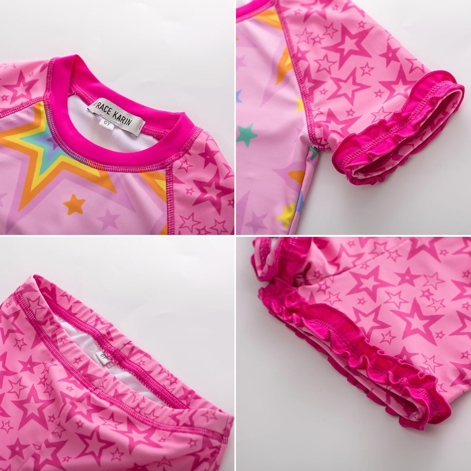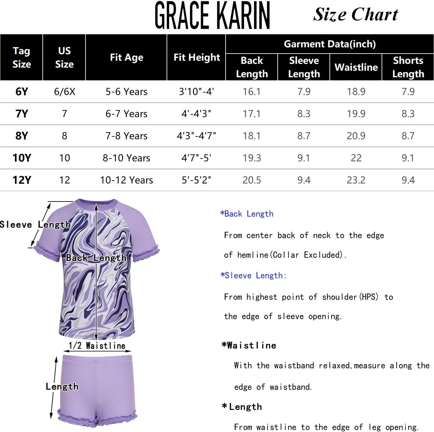 GRACE KARIN Girls Swimsuits Short Sleeve Rash Guard Two Piece Swimwear Size 5-12