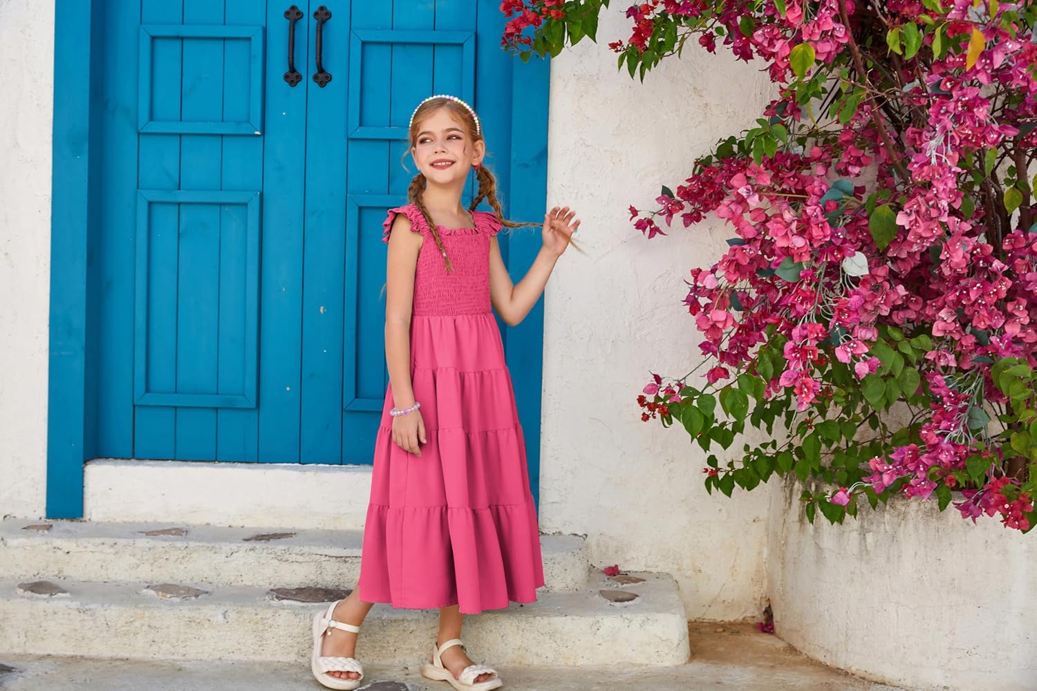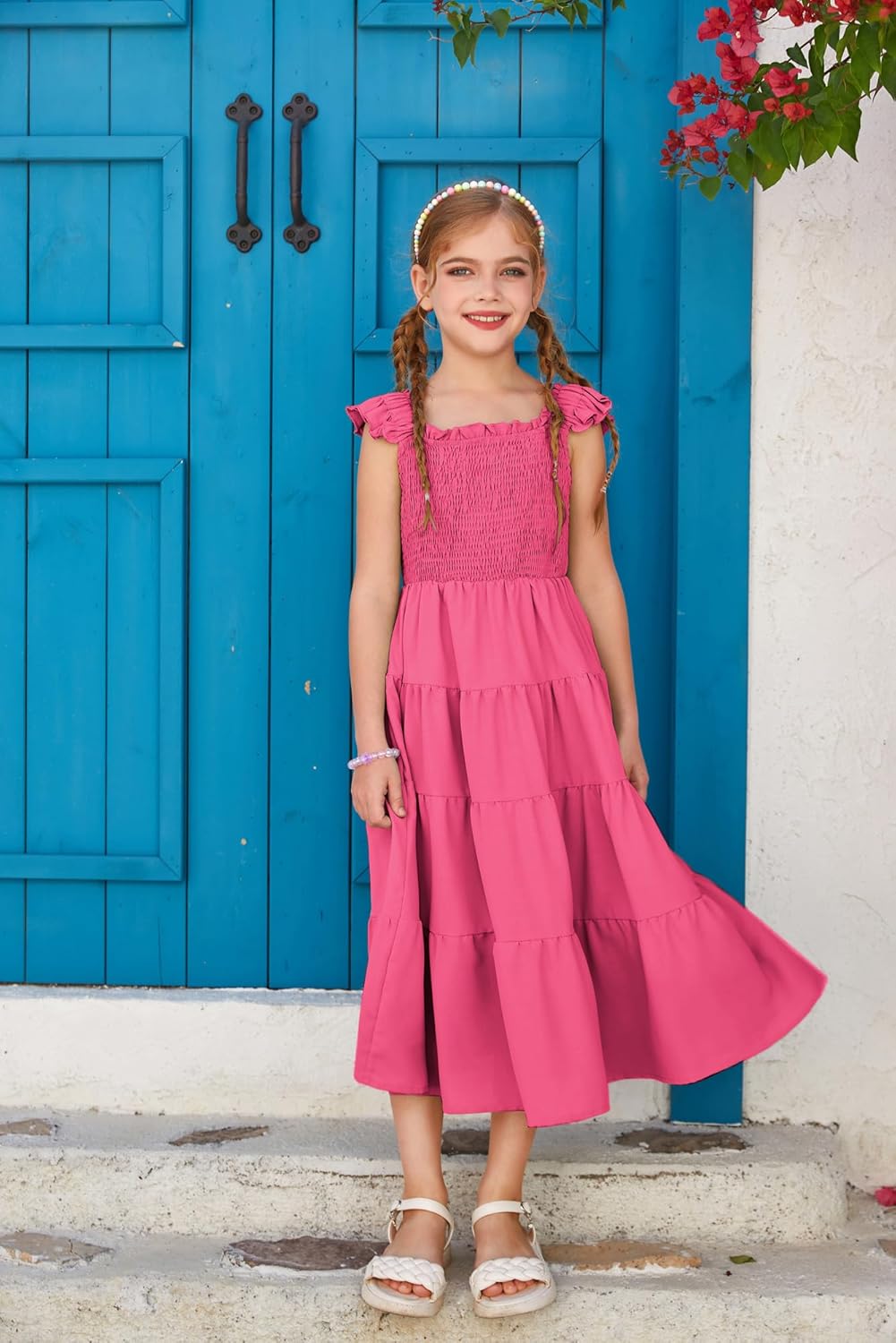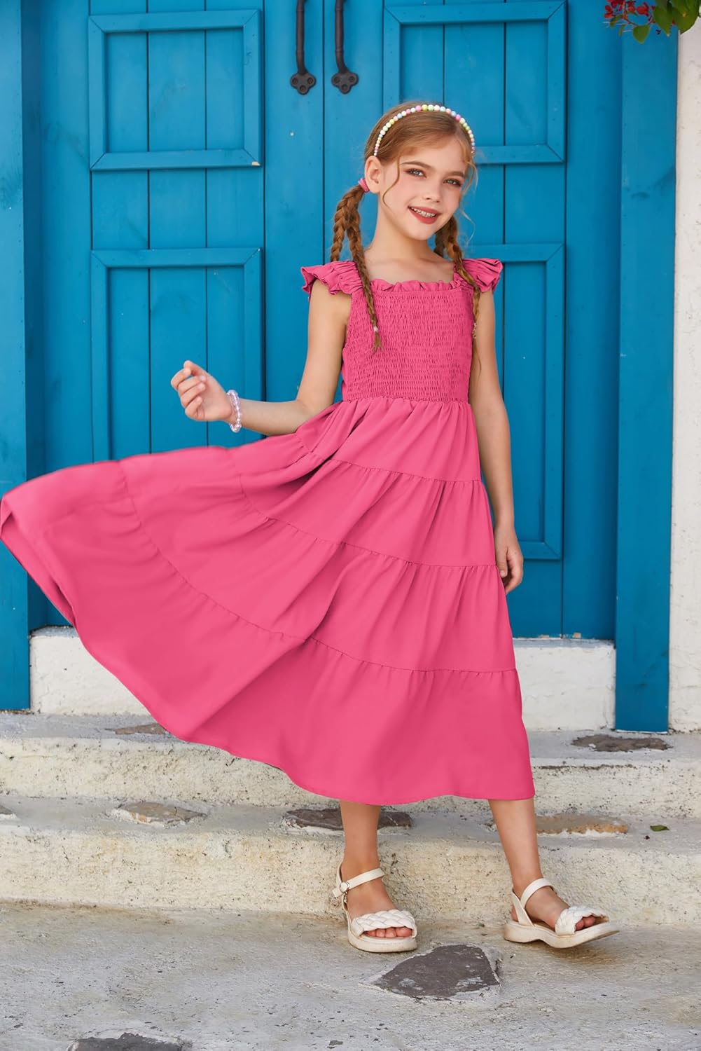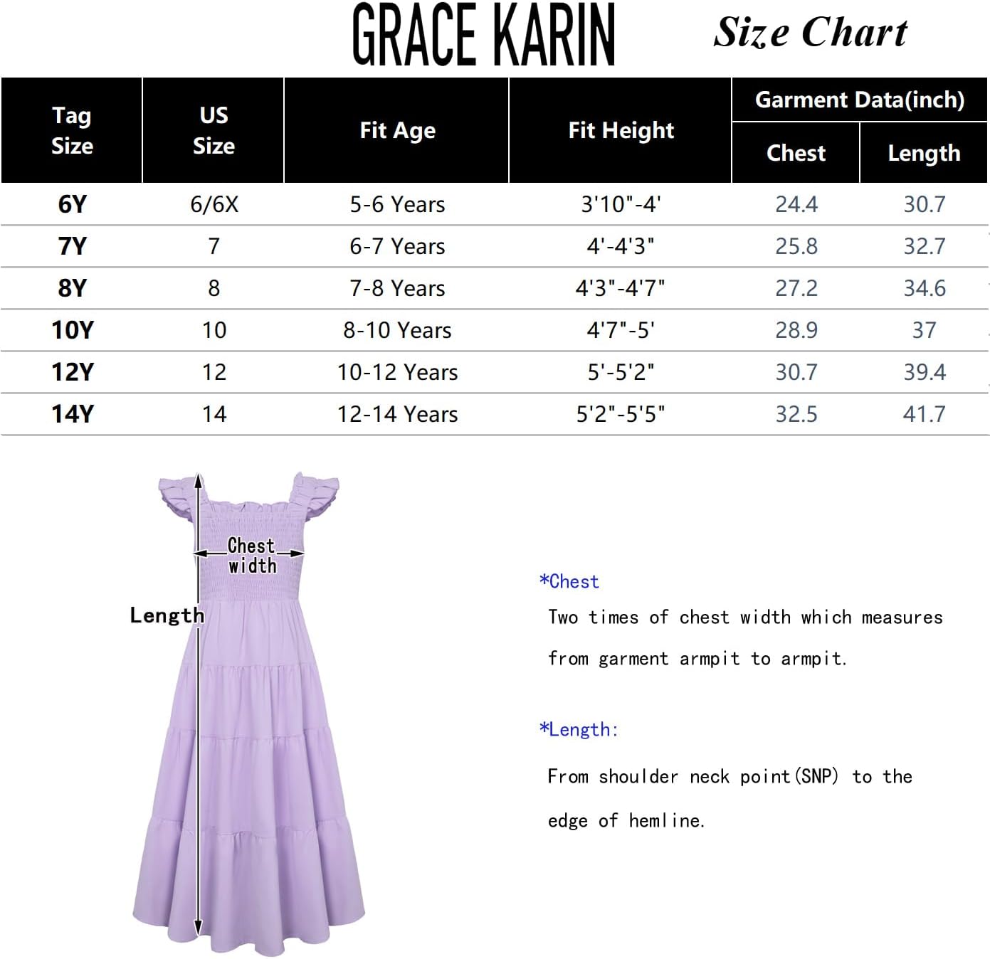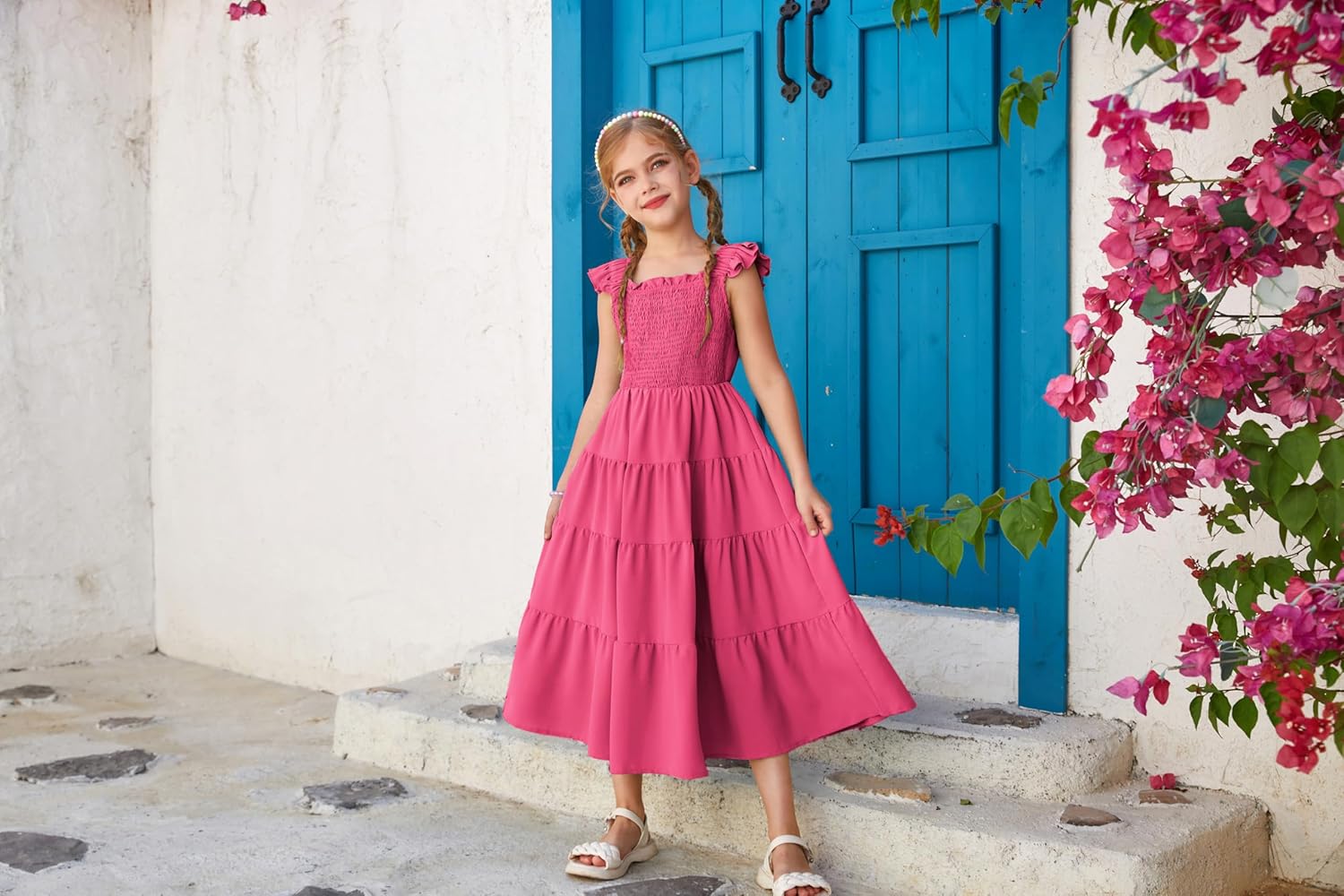 GRACE KARIN Girls Tie Back Party Dress Ruffle Sleeve Smoke Tiered Special Occasions Summer Maxi Dresses Size 5-12