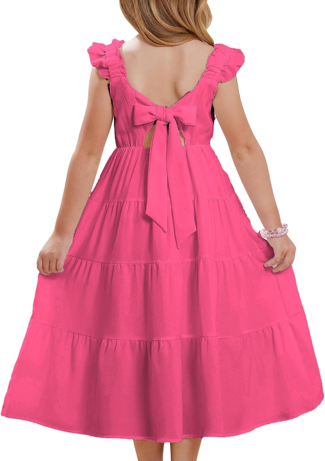 GRACE KARIN Girls Tie Back Party Dress Ruffle Sleeve Smoke Tiered Special Occasions Summer Maxi Dresses Size 5-12