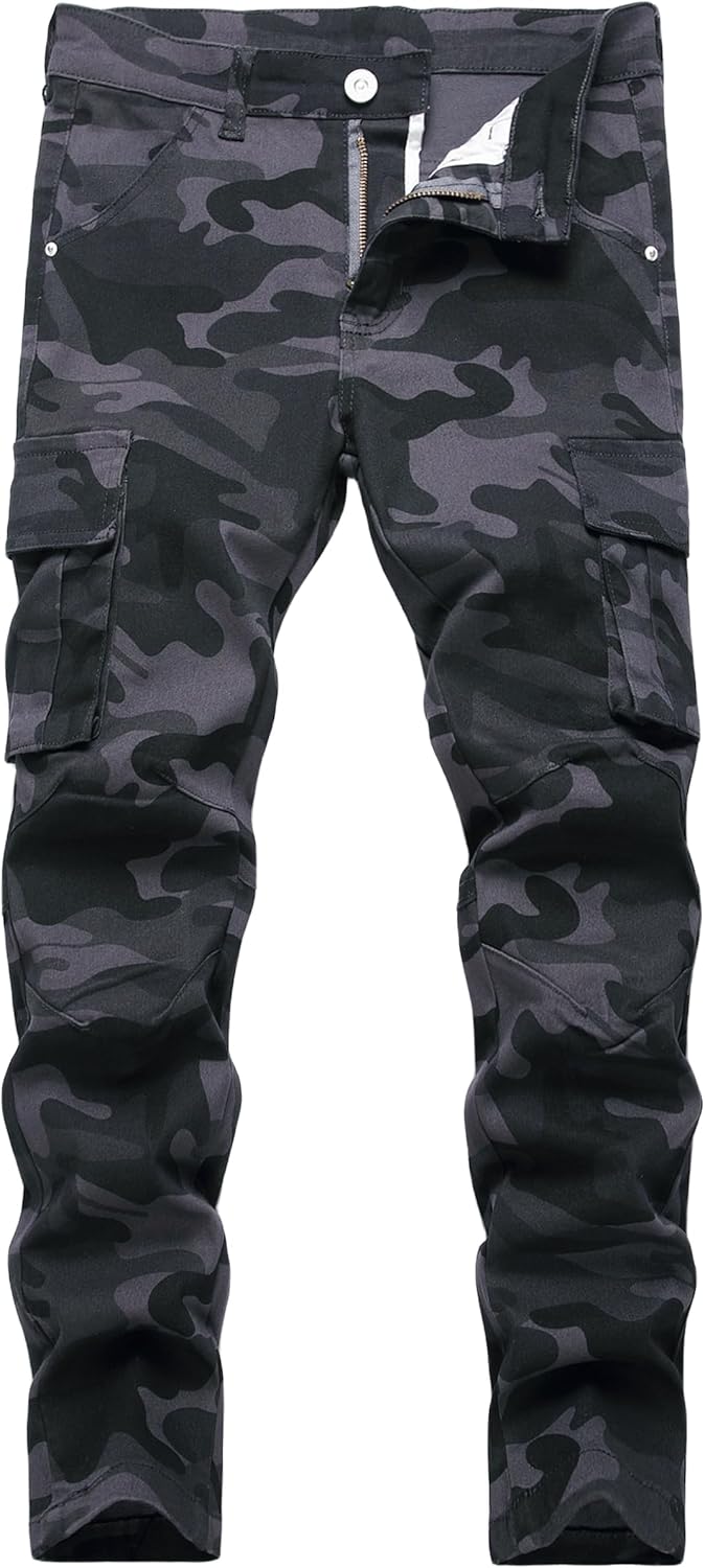 GUNLIRE Boy’s Camo Cargo Pants Skinny Fit Elastic Waist Stretch Camouflage Color Fashion Comfy Casual Pants with Pockets, specifically designed to meet the needs of fashionable boys.