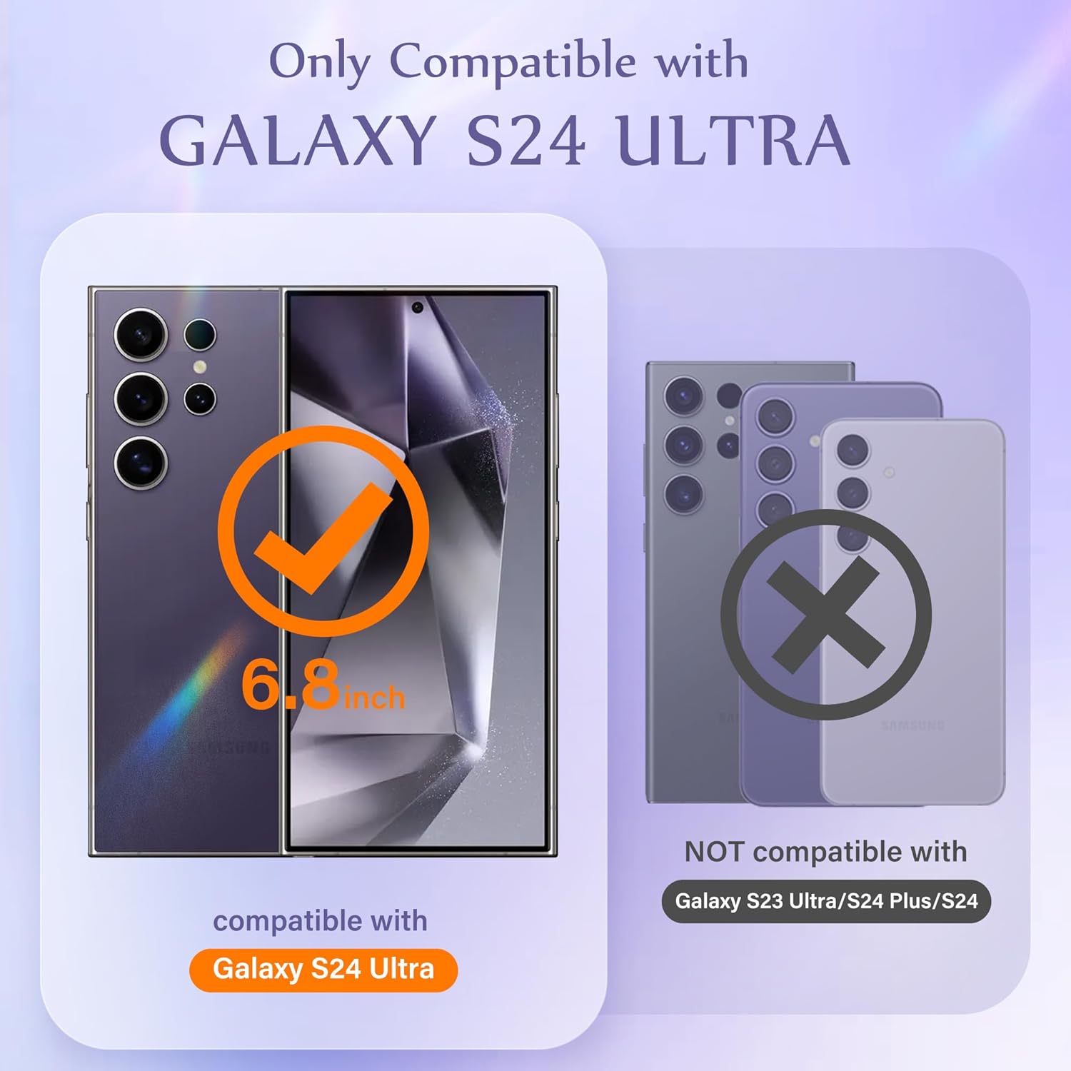 [Perfect Fit] Only compatible with Samsung Galaxy S24 Ultra 5G Case 6.8 Inch (2024 release). [Please check your phone model before purchase]. Precise cutouts allow easy access to the buttons, speaker, camera, and charging port with an original clicky feel and sensitivity. 【NOTE!】This phone case is NOT compatible with wireless chargers.