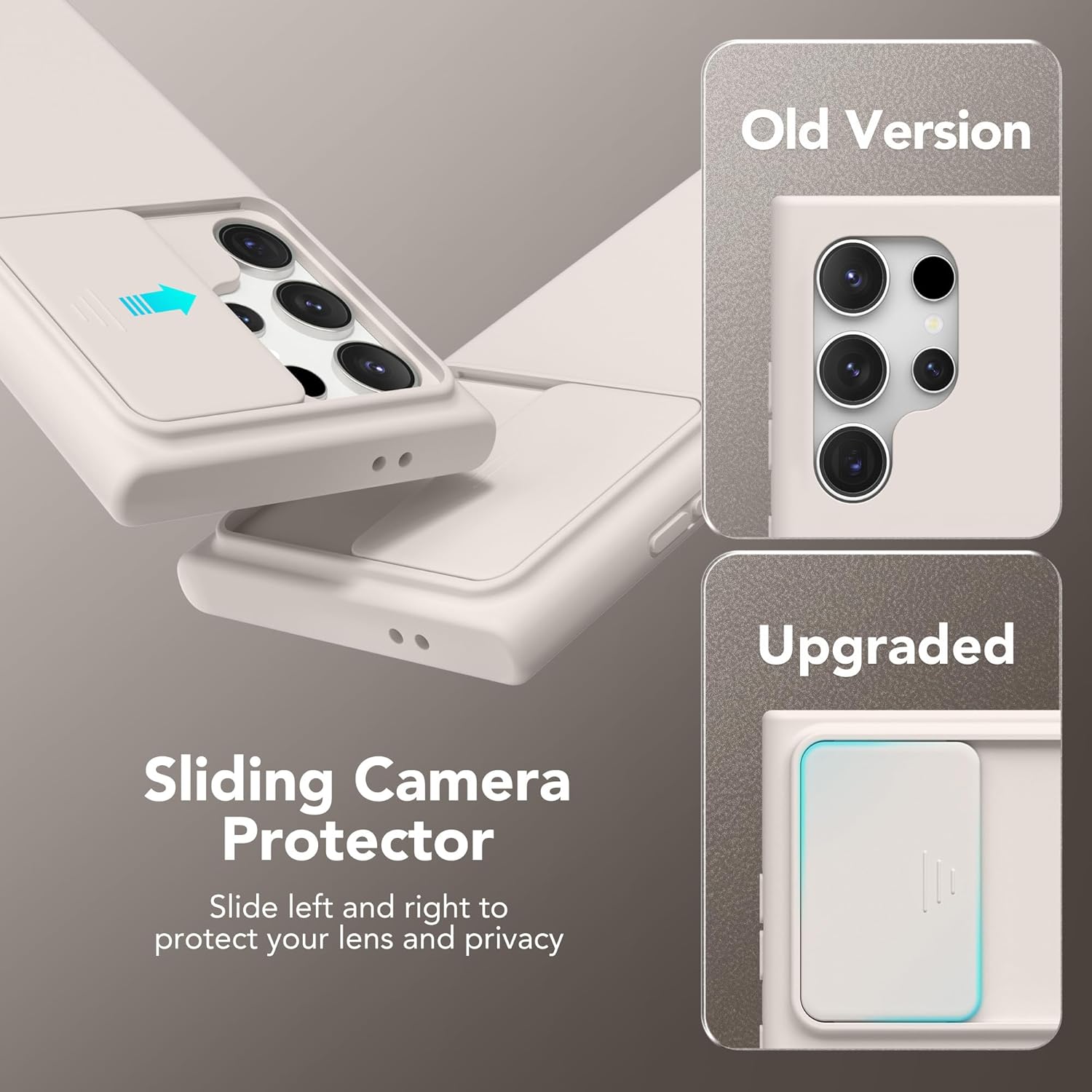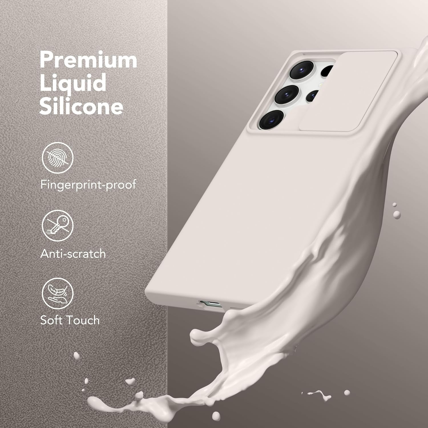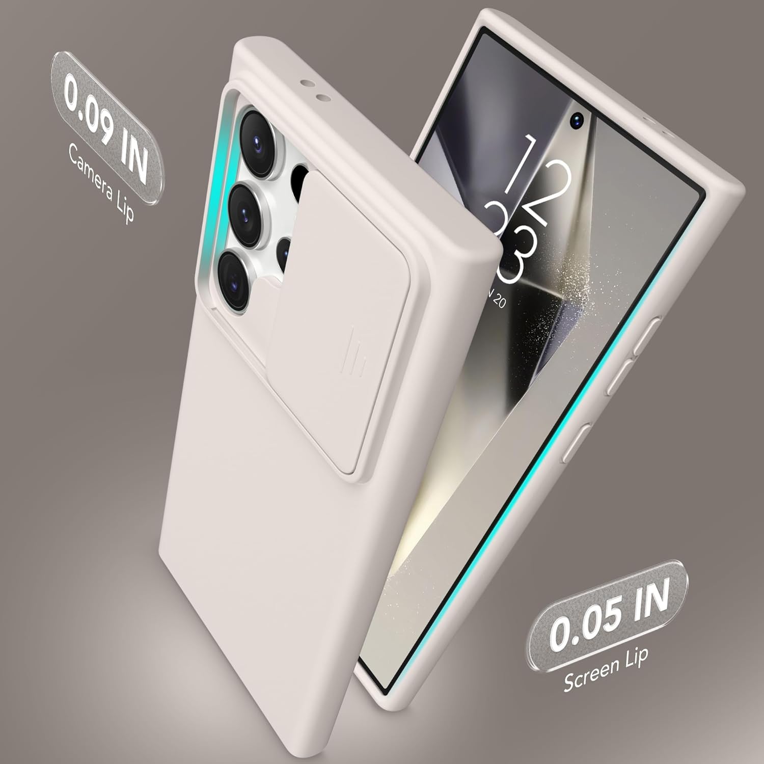 GVIEWIN for Samsung Galaxy S24 Ultra Case [Slide Camera Cover + Screen Protector] Soft Silicone Slim Shockproof Full Body Protective Microfiber Lining Phone Case Cover 6.8″ 2024, Stone