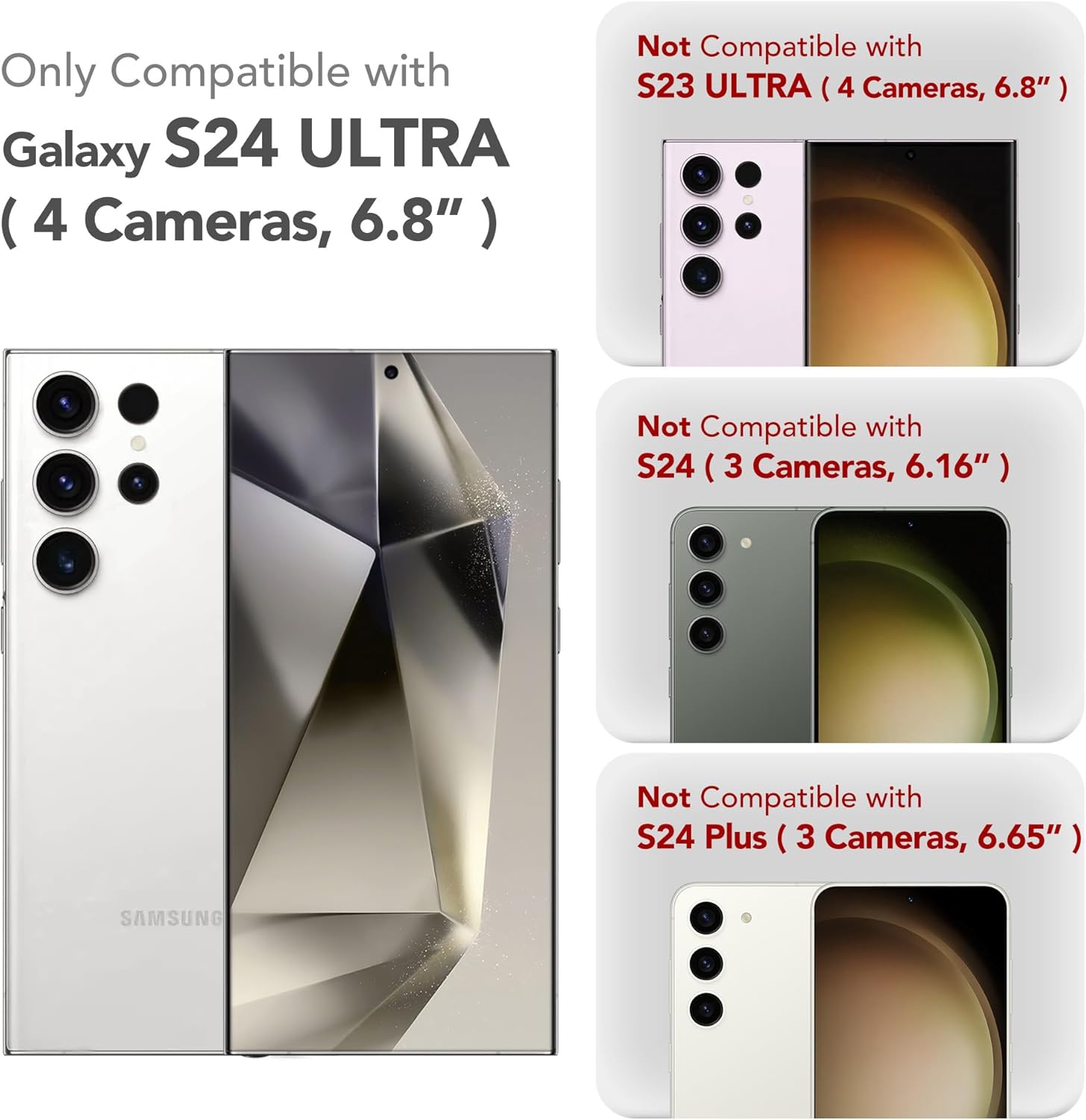 [Perfect Compatibility] ONLY compatible with Samsung Galaxy S24 Ultra 5G 6.8 inch (2024 release). (❗NOT for S24 and S24+ Plus). the phone case fits snugly over the buttons and curve of your phone. It also supports wireless charging without removing the case. Gviewin offers 24/7 customer service and a lifetime warranty. If you have any questions, please contact us via Amazon.