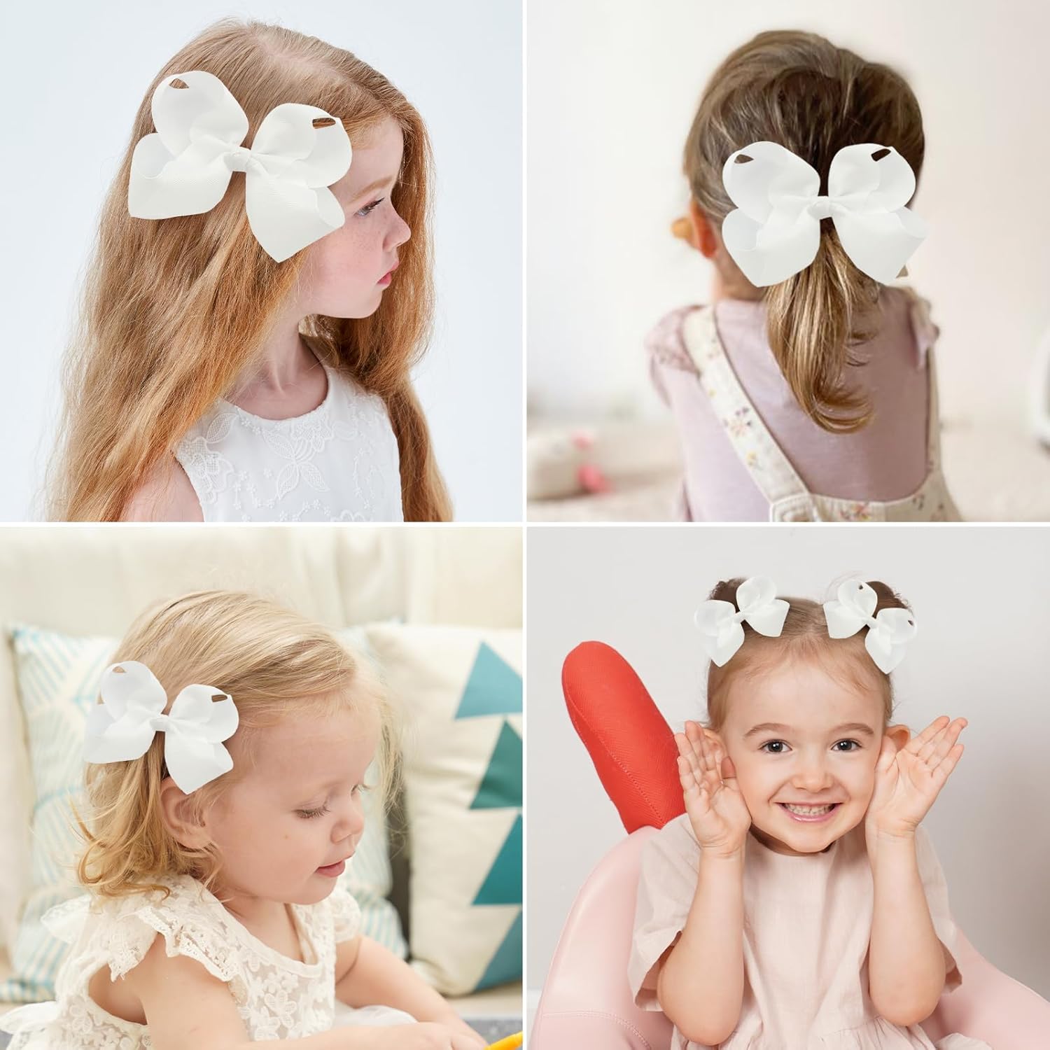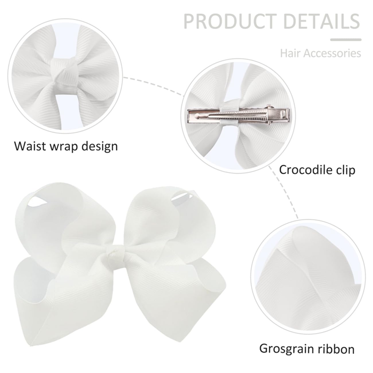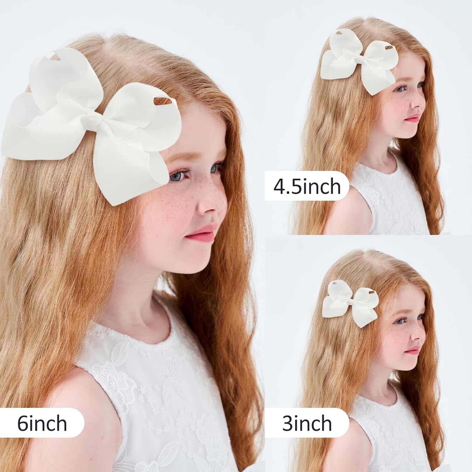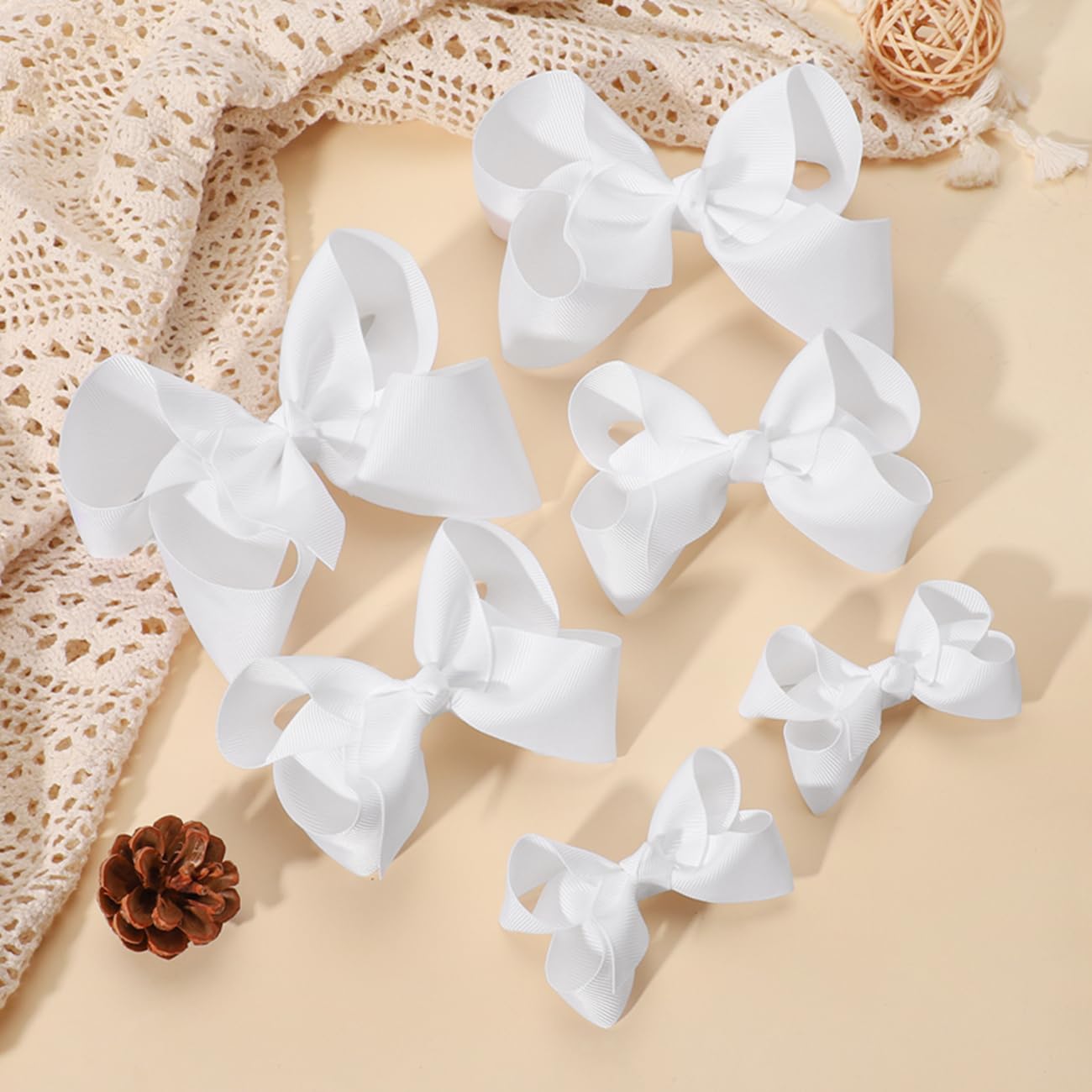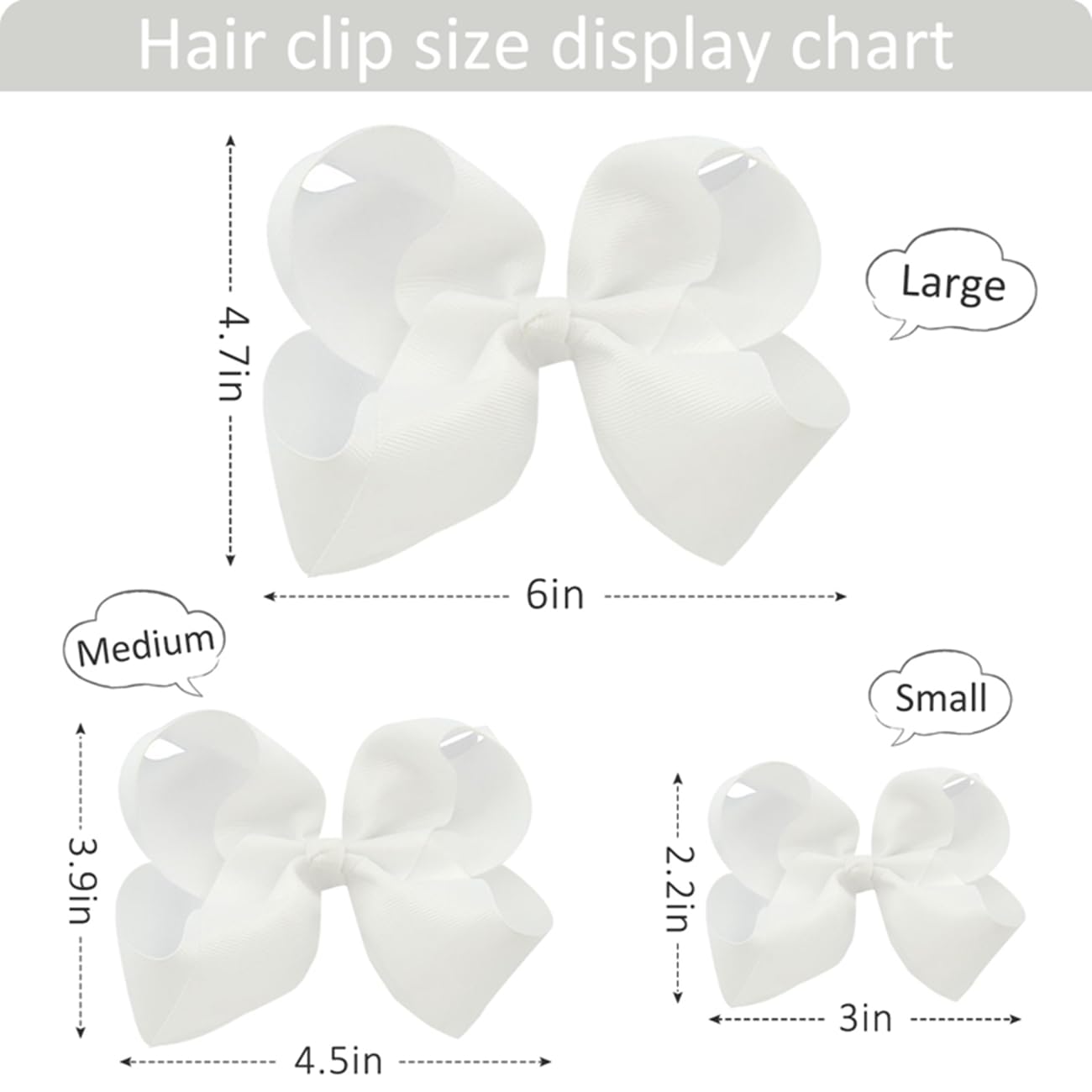 Hair Bows for Girls Alligator Clips White Grosgrain Ribbon Solid Color Hair Accessories for Little Teen Toddler Girls Kids (6inch ×2, 4inch ×2, 3inch ×2)