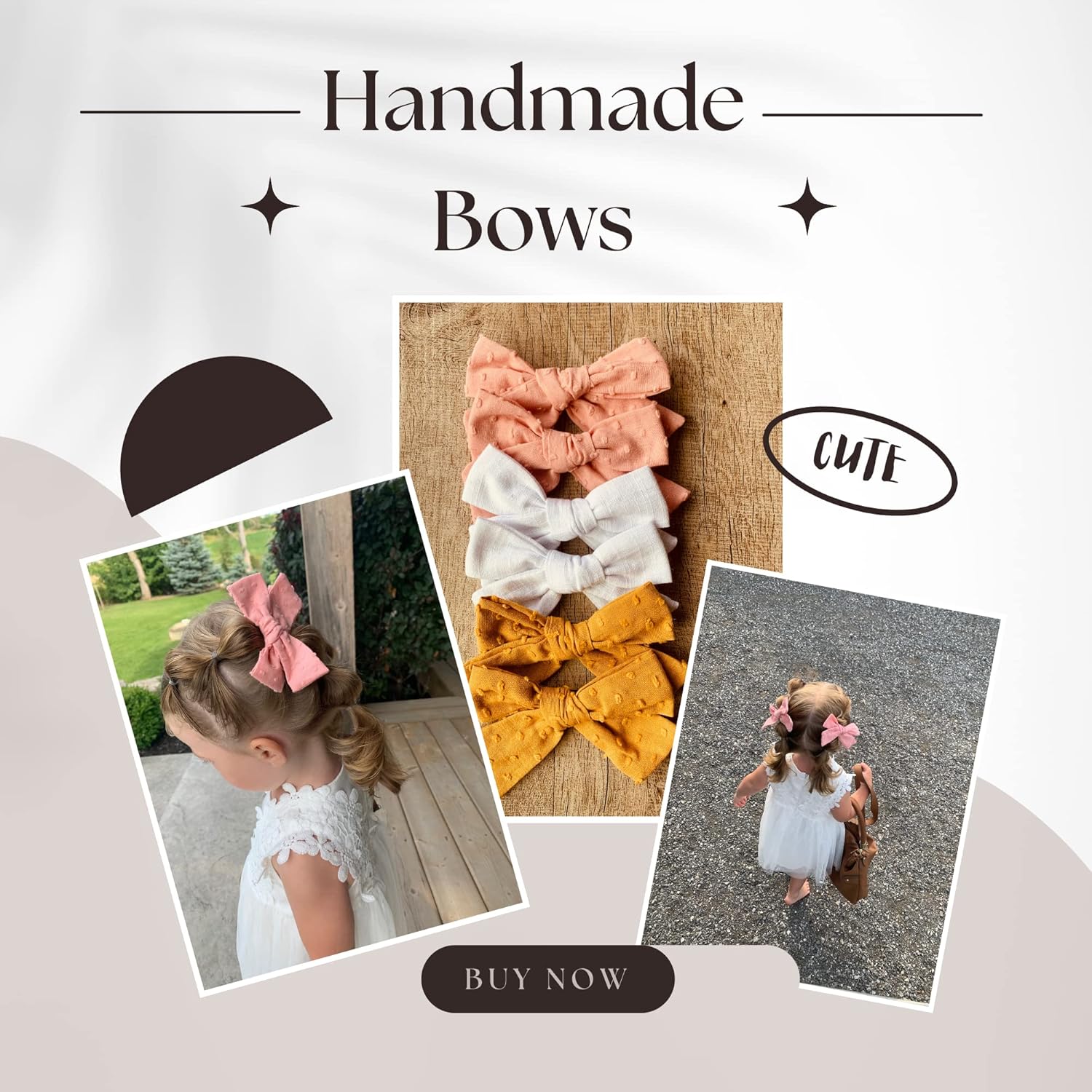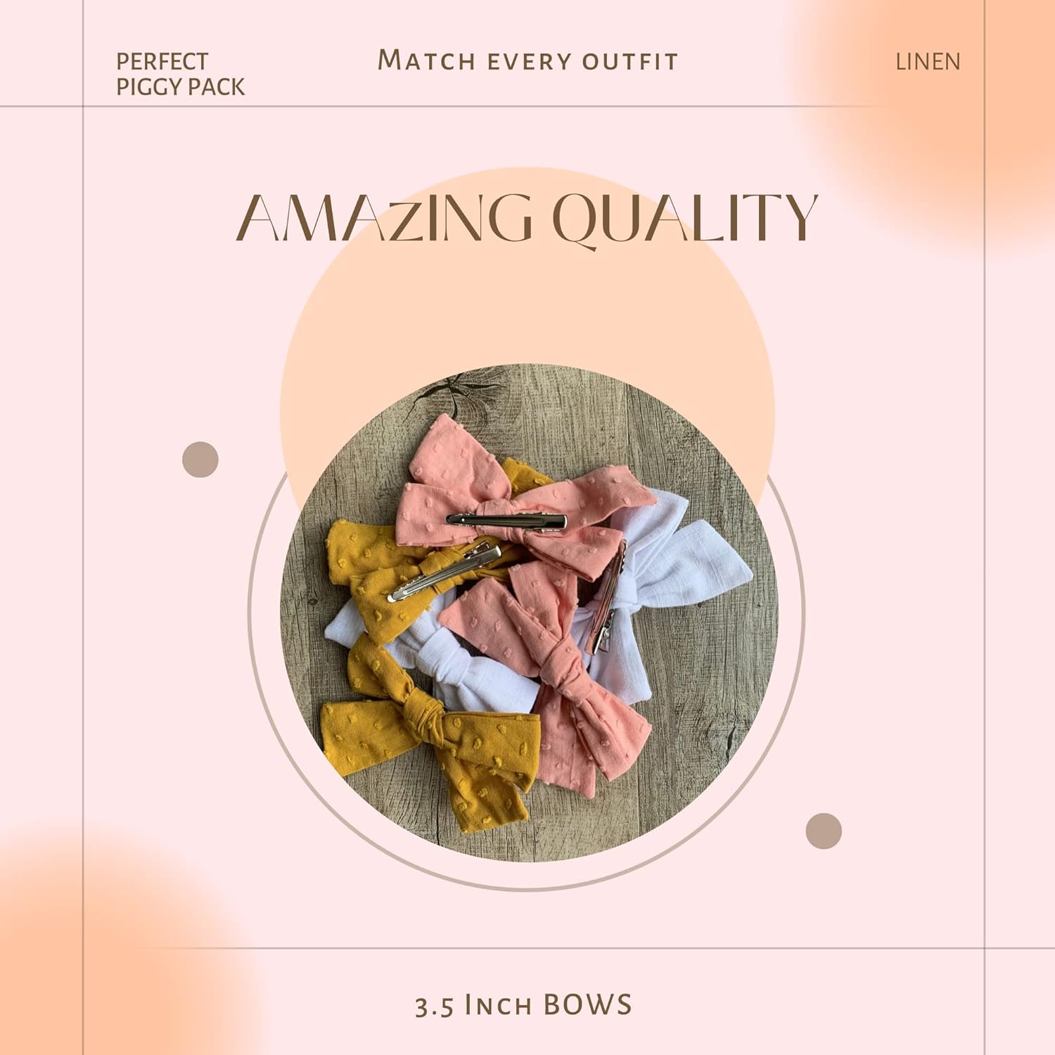 Hair Bows for Toddler Babies Hair Clips 6PC Pink White Yellow Piggy Pack Handmade 3.5 Inch Bright