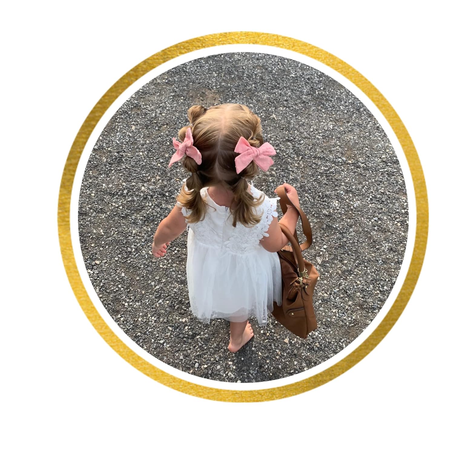 Adorable Hair Bows for Children and Toddlers. 2 of Each Color to make the perfect Piggy Pack. These bows are secured with an alligator clip. The alligator clip allows for the clip to be removed with no tugging! Colors are Mustard White and Pink