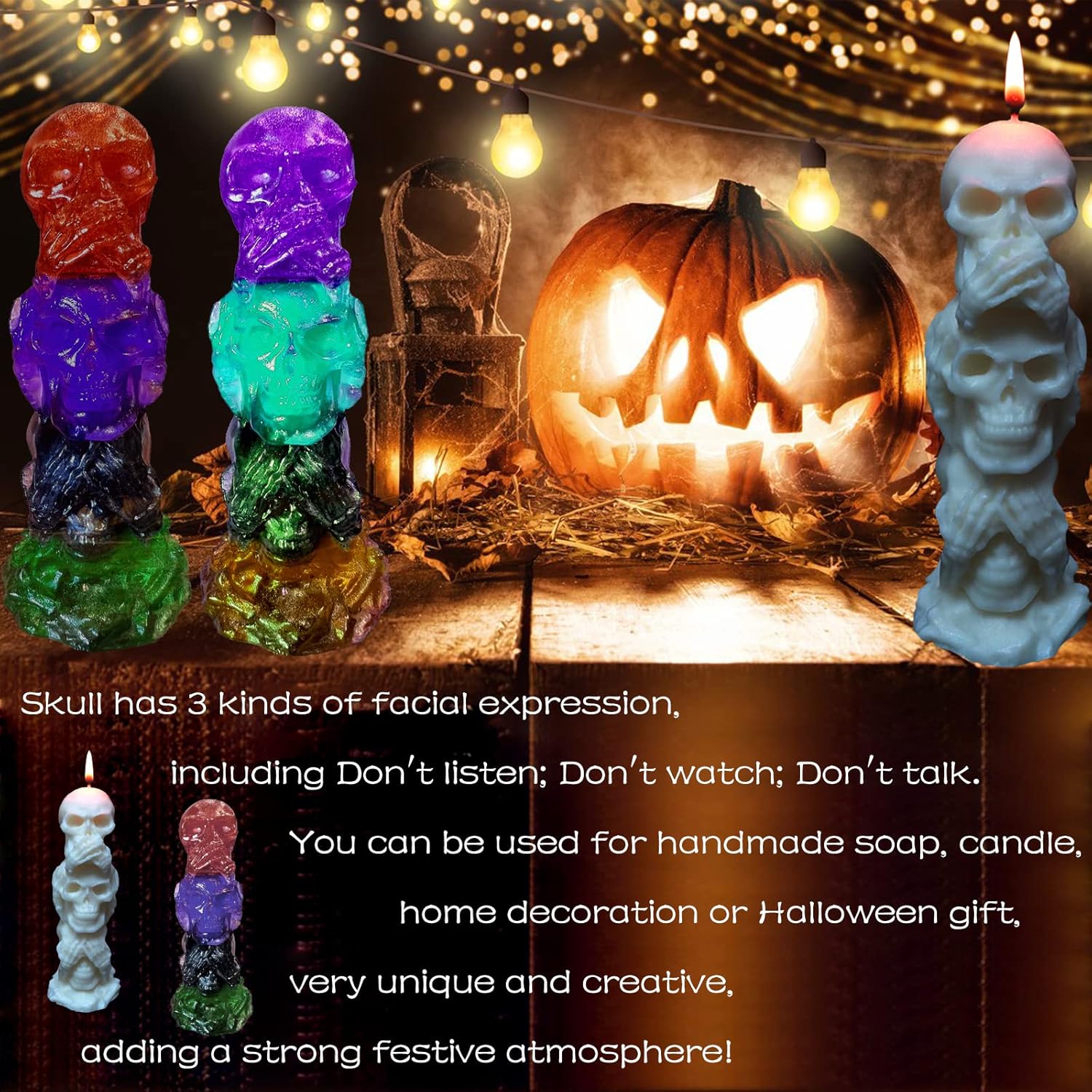 Halloween Skull Candle Molds, 3D Skull Skeleton Silicone Molds for DIY Epoxy Resin, Handmade Soap, Aromatherapy Candle Column, Casting Art Crafts, Home Decor