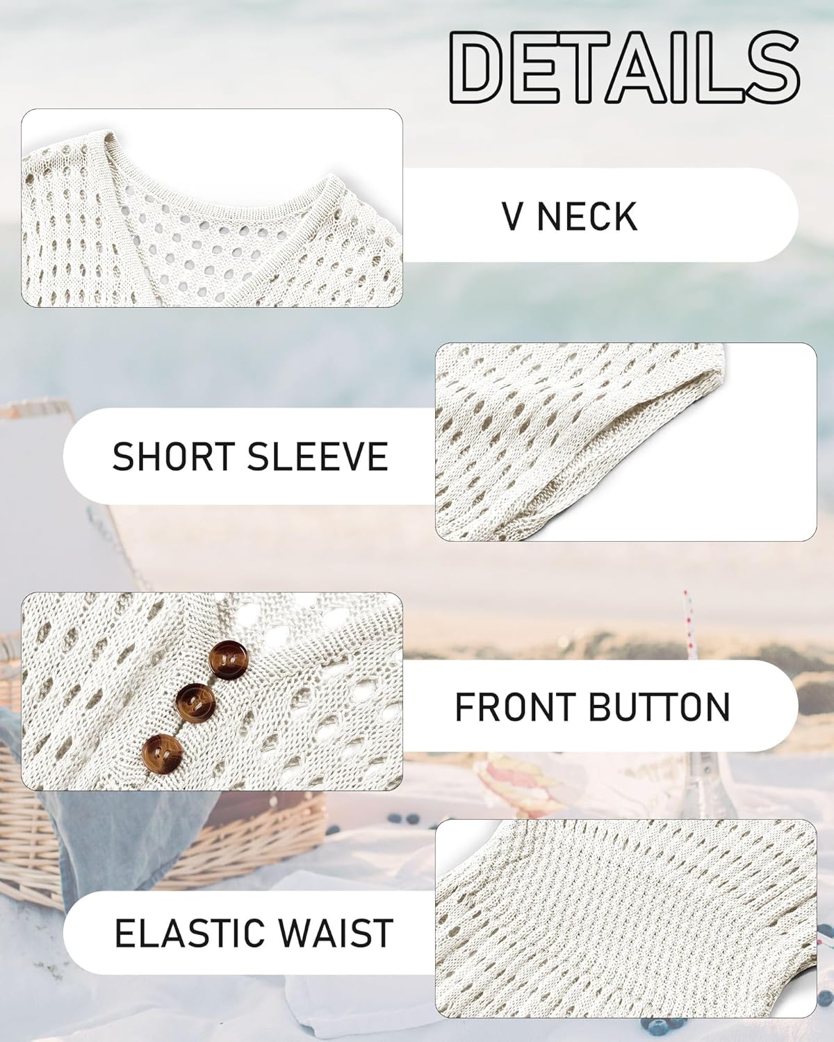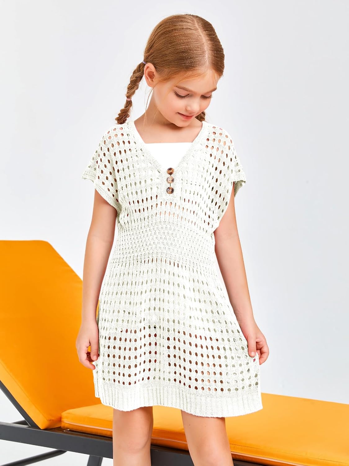 Haloumoning Girls Crochet Swim Beach Cover Up Kids Fashion Button Short Sleeve Swimsuits Cover Ups 5-14 Years