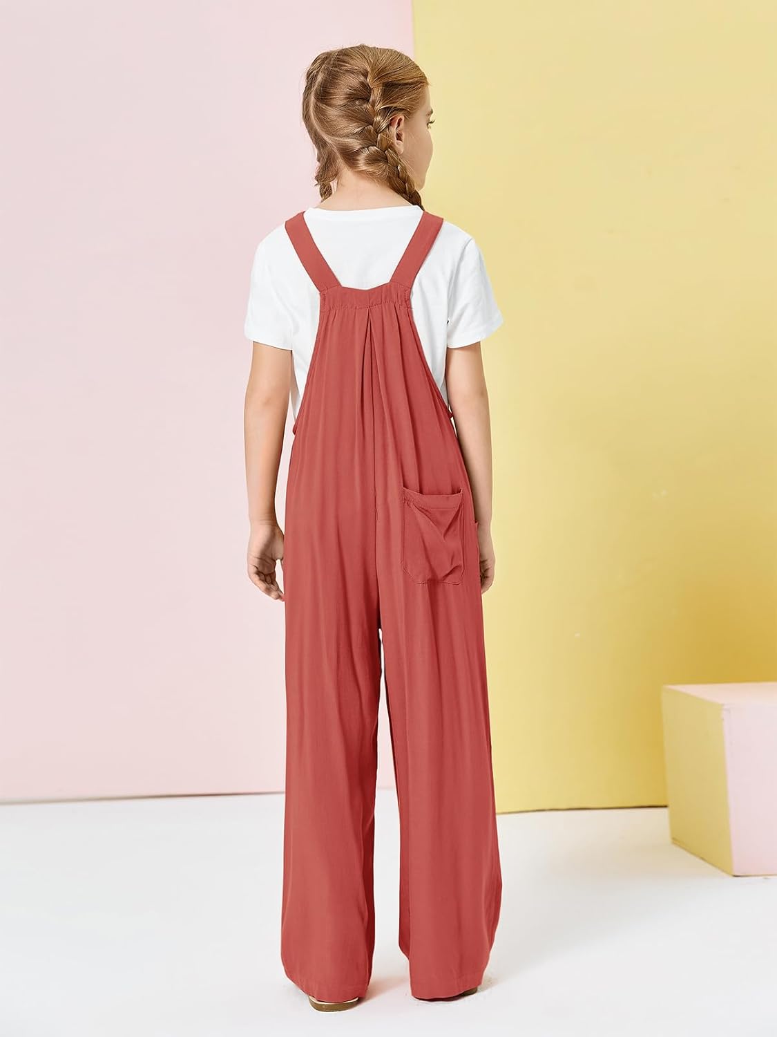 Haloumoning Girls Overalls Kids Casual Sleeveless Wide Leg Jumpsuit Loose Rompers with Pockets 5-14 Years